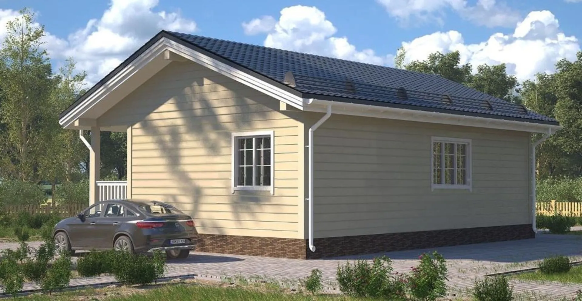 Погрузитесь в уют и теплоту европейского дома, который сочетает традиционное качество с современным комфортом. Этот каркасный дом в проекте К‑70 — настоящая жемчужина для тех, кто ценит спокойствие, элегантность и природную красоту. Однолетний, построенный из высокого класса деревянного каркаса, он обеспечивает отличный тепло- и звукоизоляционный комфорт в любое время года, позволяя вам наслаждаться мягкими летними днями и уютными зимними вечерами. Европейский архитектурный стиль вкупе с строгой двускатной кровлей и просторным чердачным помещением создают ощущение простора и легкости. Огромные окна впускают солнечный свет, наполняя каждый уголок природным теплом, а терраса приглашает проводить свободное время на свежем воздухе, наблюдая за меняющимся пейзажем. В доме отсутствуют балконы и веранда, а также пристроенный гараж, что делает его гармонией с природой и чистого дизайна. И всё это — в уютной, открытой планировке, где каждый элемент продуман до мелочей, чтобы создать атмосферу домашнего уюта и тепла.
