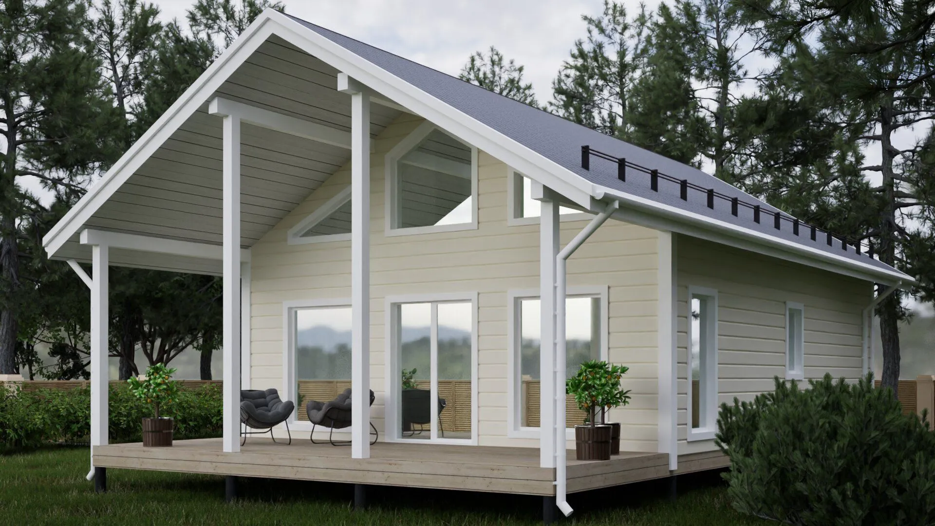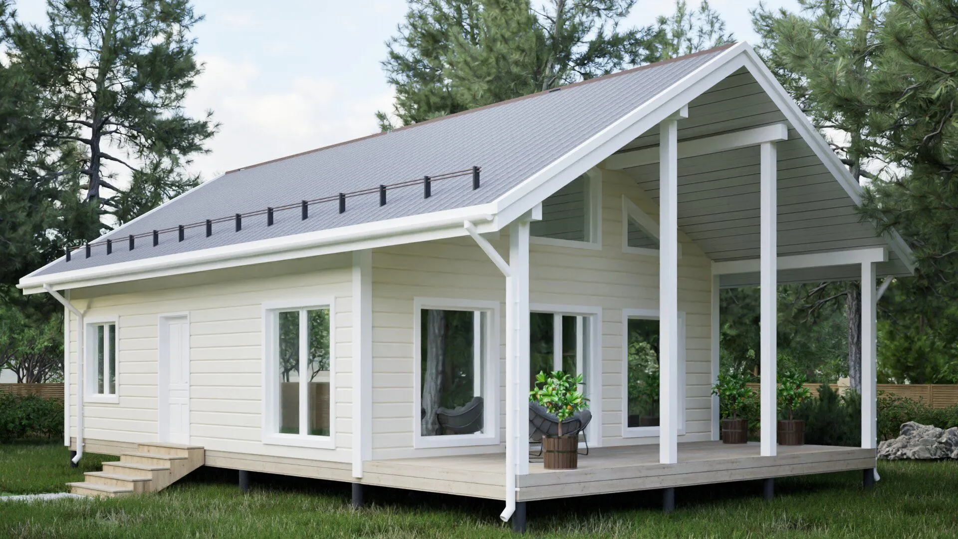 Каркасный дом с мансардой-M117