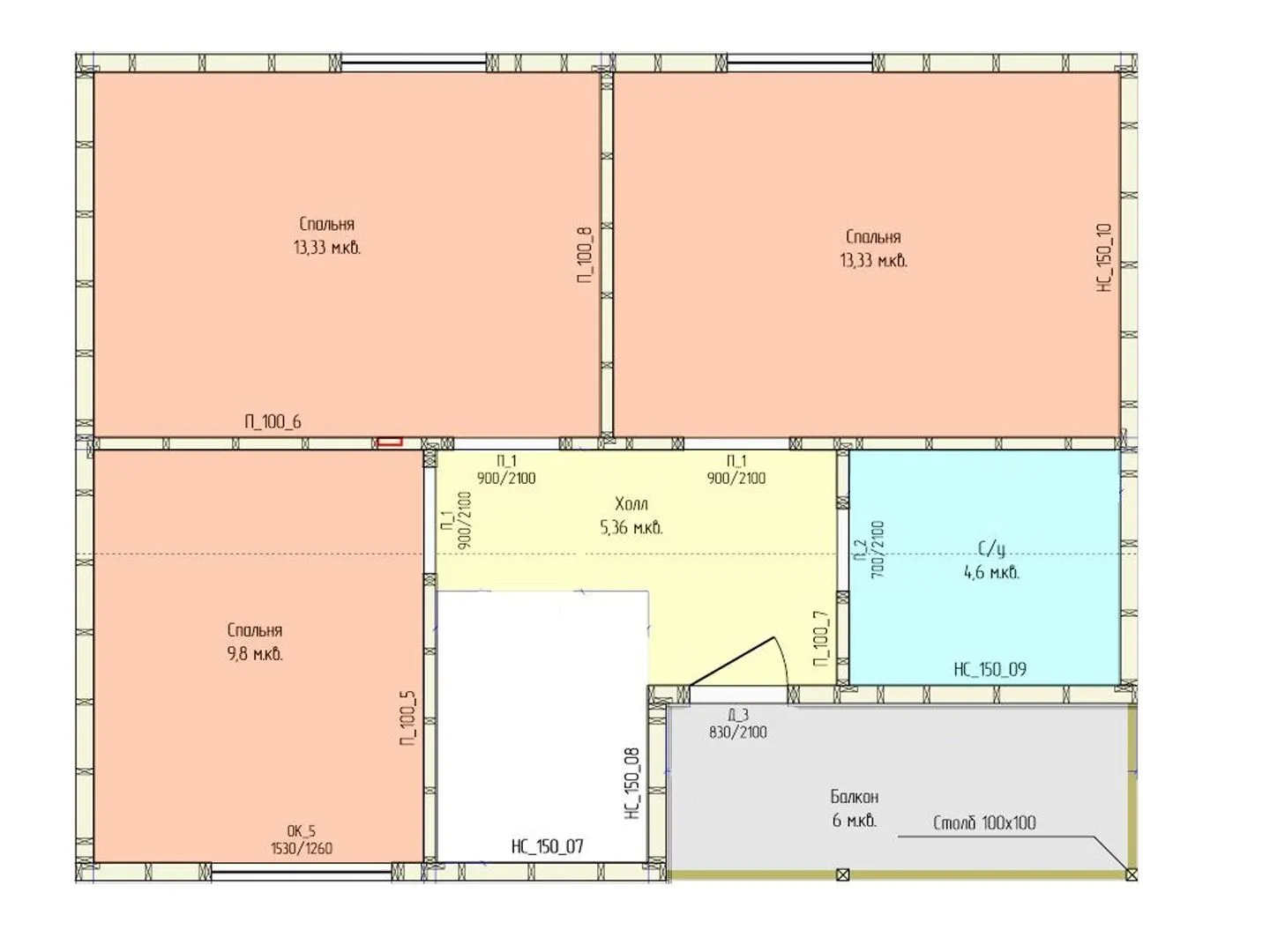 Толщина внутренних перегородок