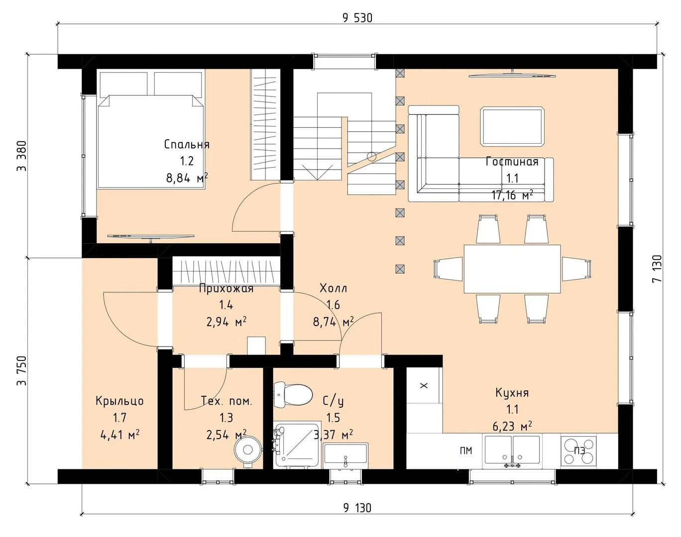 Заказать конусльтацию по:Каркасный дом «Выставочный (без террасы)»