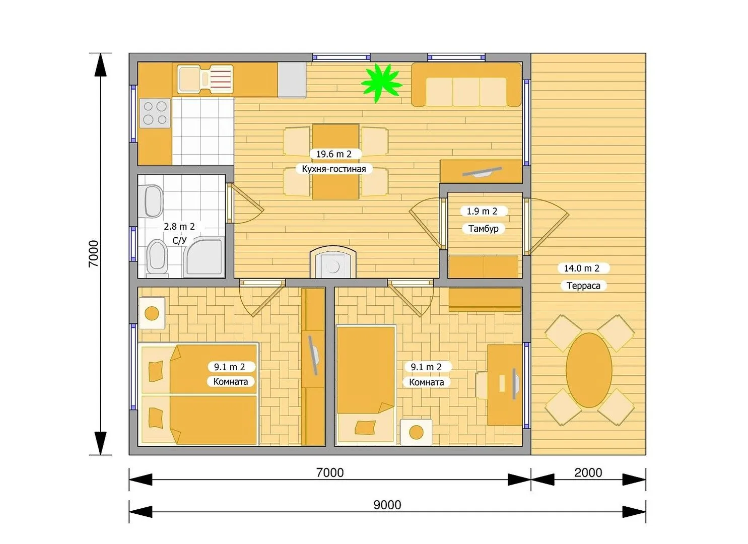 Площадь дома 56 м2