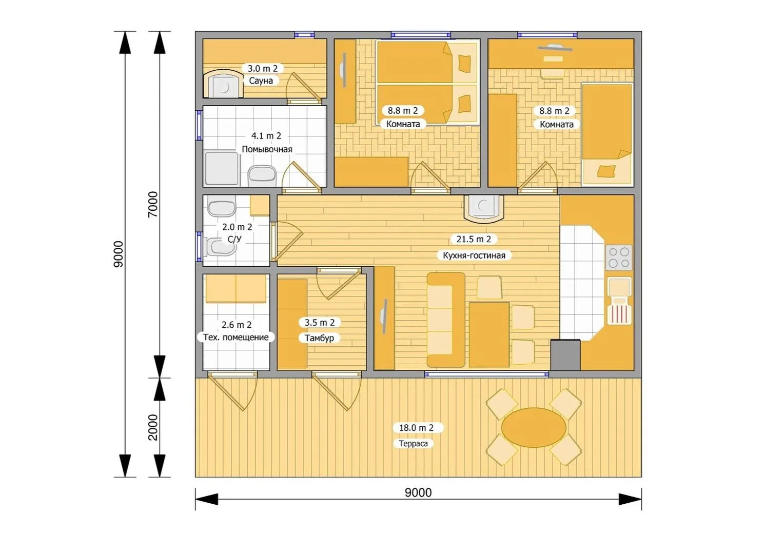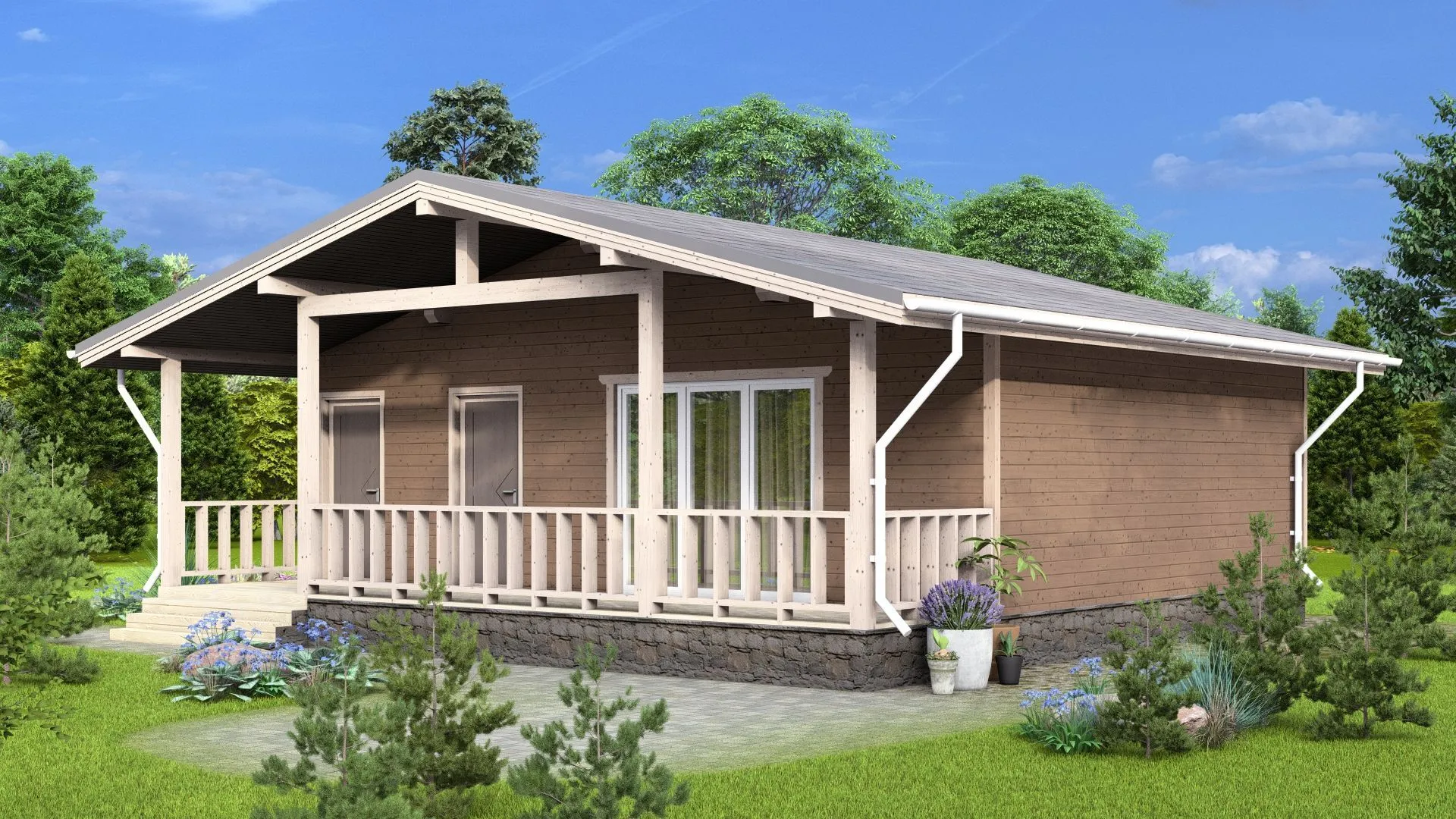 **КД 15‑22 «Кемь»** – это настоящий уголок уюта и простоты, созданный в духе скандинавского дизайна. Одна надземного этажа, круглогодичная пригодность и безупречные материальные качества делают эту модель идеальным вариантом для семейного проживания в любое время года. Внутреннее пространство открыто и светло, благодаря продуманному размещению окон и просторной планировке, а натуральные материалы создают ощущение целостности с природой вокруг. Особое внимание уделено внешнему облику: деревянный каркасные стены в сочетании с классической двускатной крышей придают дому нотки элегантной минималистичности и одновременно защищают от непогодных условий. Находится уютная терраса, где можно наслаждаться свежим воздухом и закатами, а отсутствие дополнительного гаража и веранд делает интерьер более свободным и простым. Это идеальное место, где каждый день начинается с ощущения умиротворения и завершен теплом домашнего очага.
