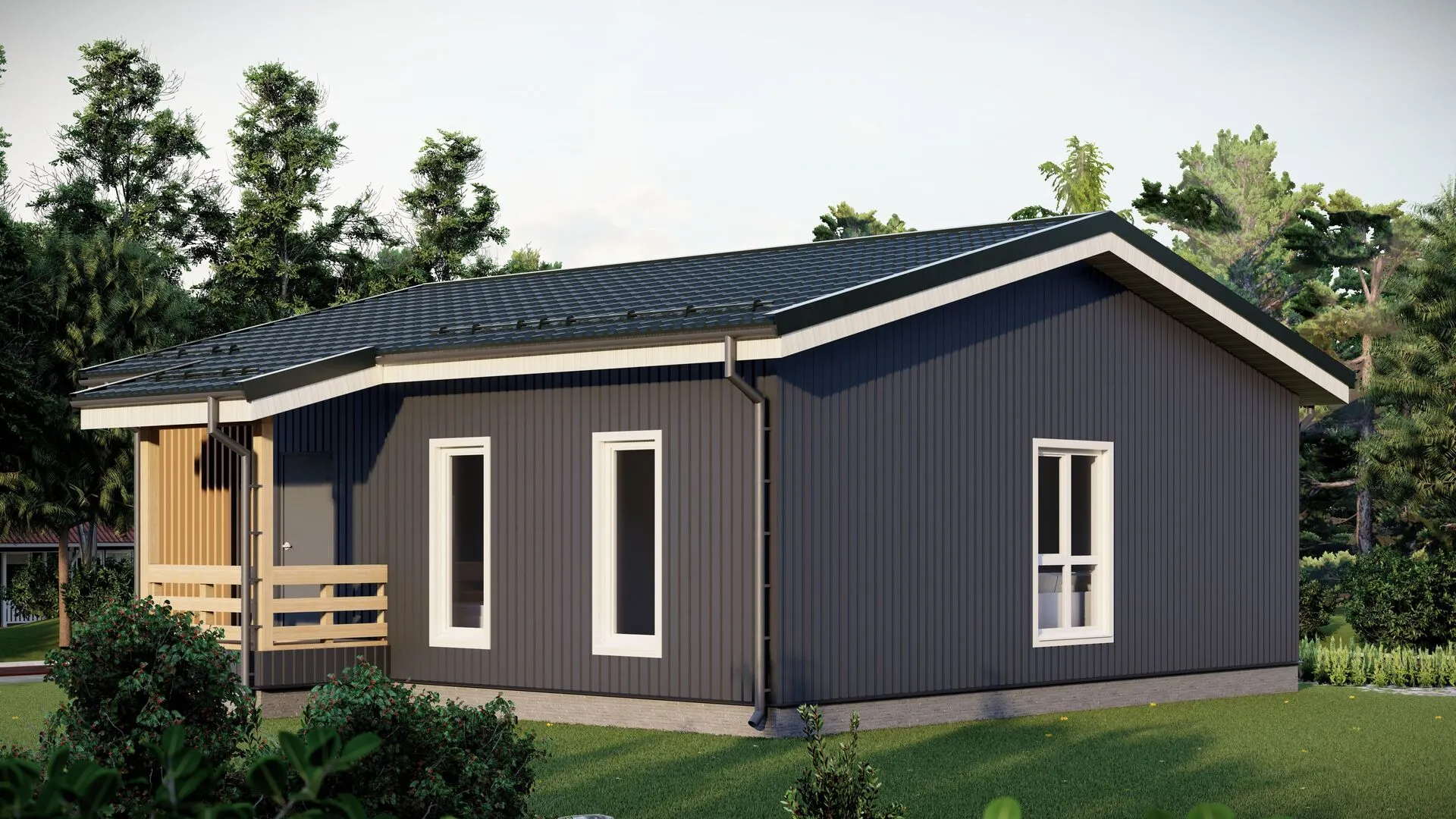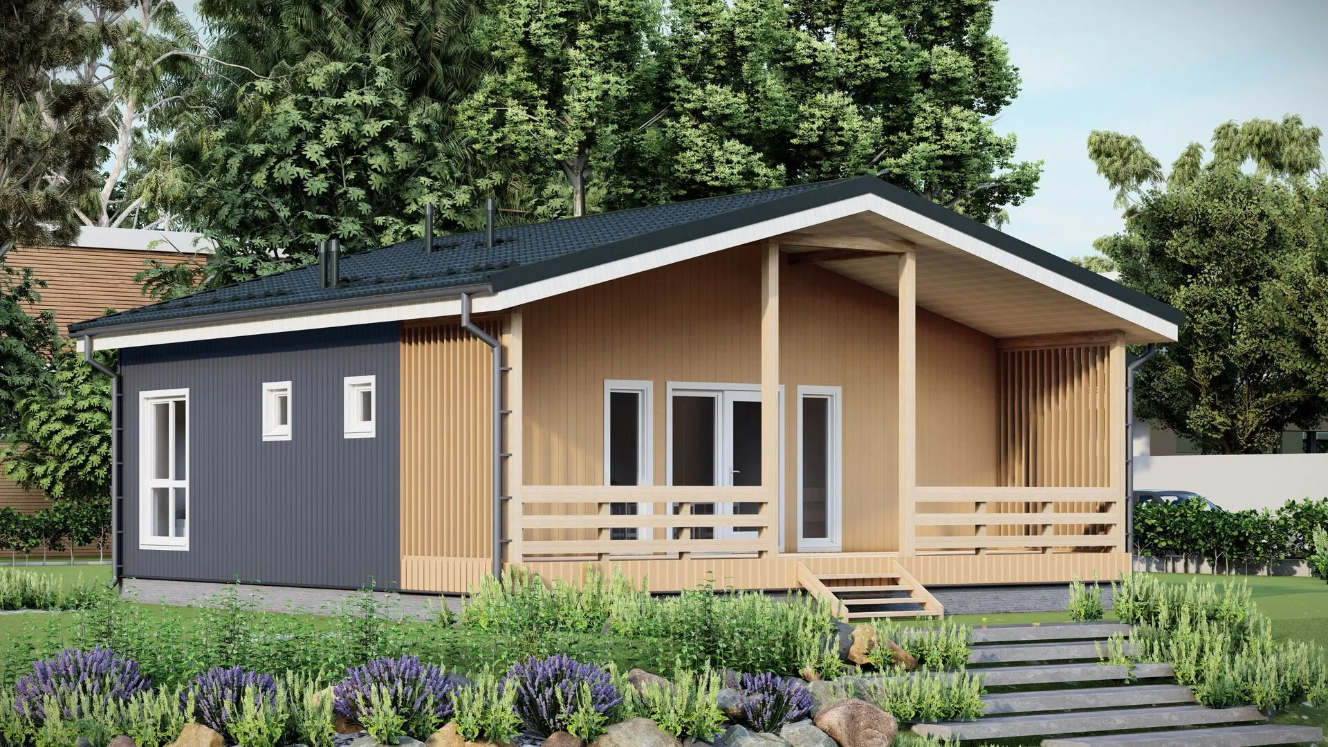 Одноэтажный дом с тремя спальнями и террасой