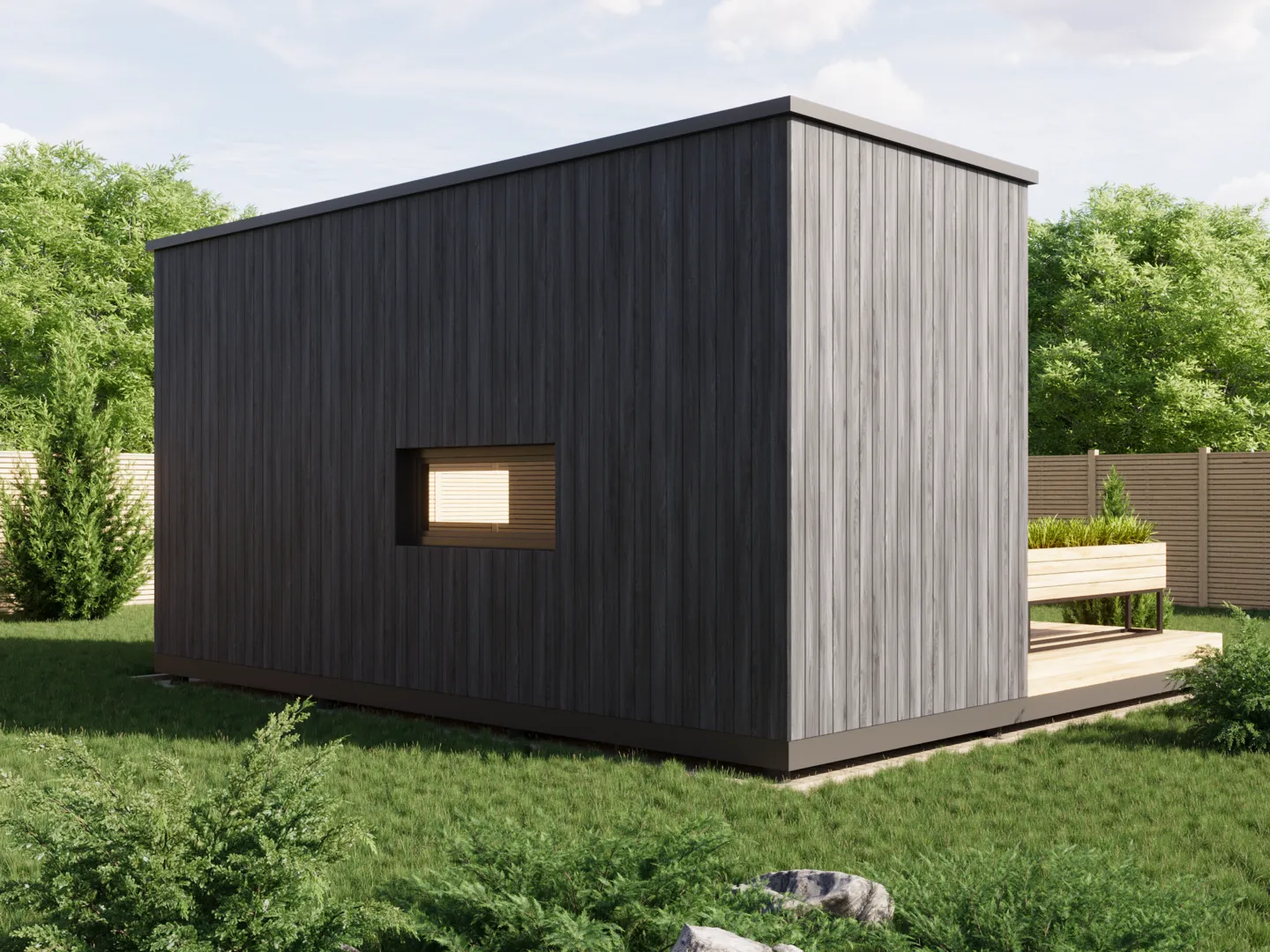 Дом **«Хейнс (К‑1‑15)»** сочетает в себе современный хай‑тек‑стиль с элегантной простотой, создавая атмосферу уюта и технологической гармонии. Внутреннее пространство открытого уровня удобно для круглогодичного проживания: благодаря обширной террасе можно наслаждаться прогулками под открытым небом, а стильные, лаконичные линии каркасных деревянных стен придают дому ощущение легкости и тепла, характерное для современных деревянных строек. Отсутствие балконов и пристроенного гаража говорит о чистоте форм и максимальной приватности, в то время как плоская крыша придает фасаду чистый, минималистический вид, открывая широкие панорамы города. Благодаря продуманной планировке и высокотехнологичным материалам, «Хейнс» становится идеальным убежищем для тех, кто ценит комфорт, стиль и функциональность одновременно. Это воплощение современности — ваш новый дом, где каждый день выглядит как праздник.