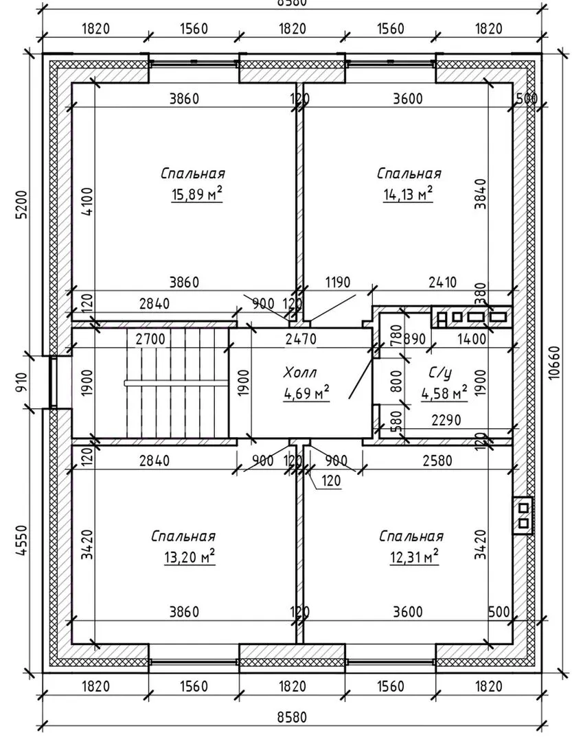 Толщина внешних стен