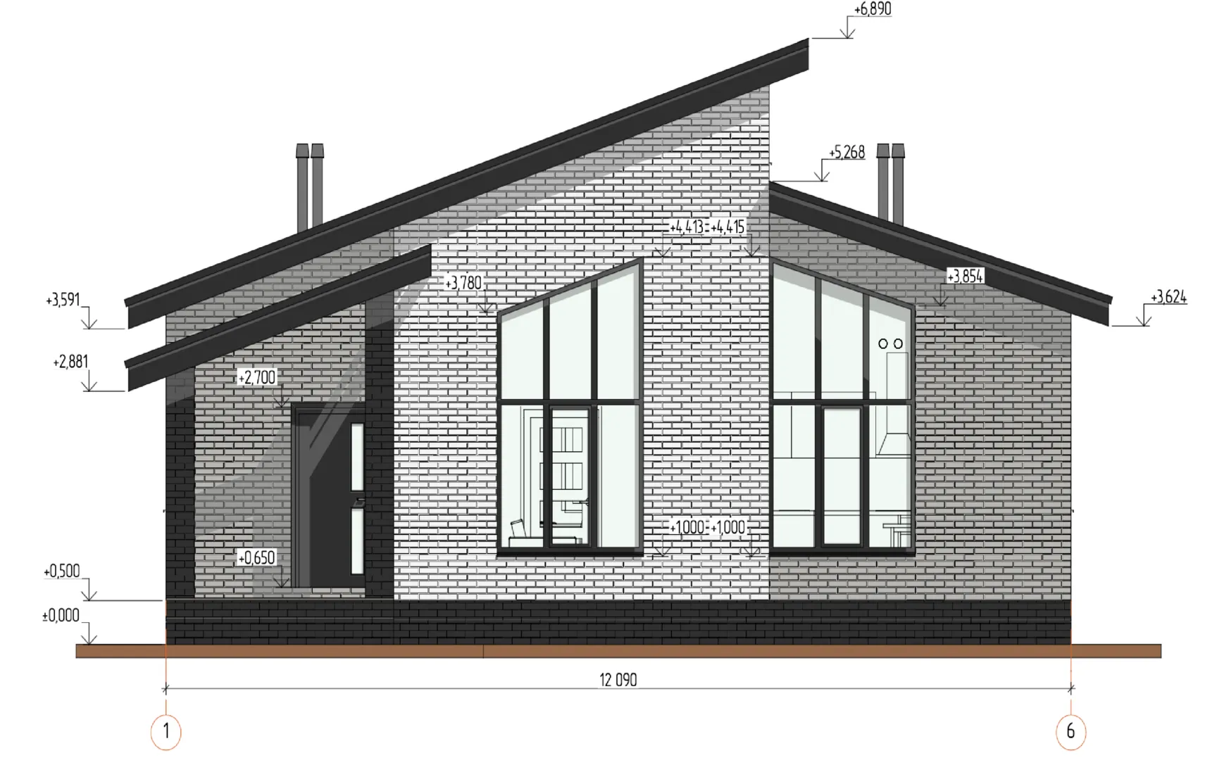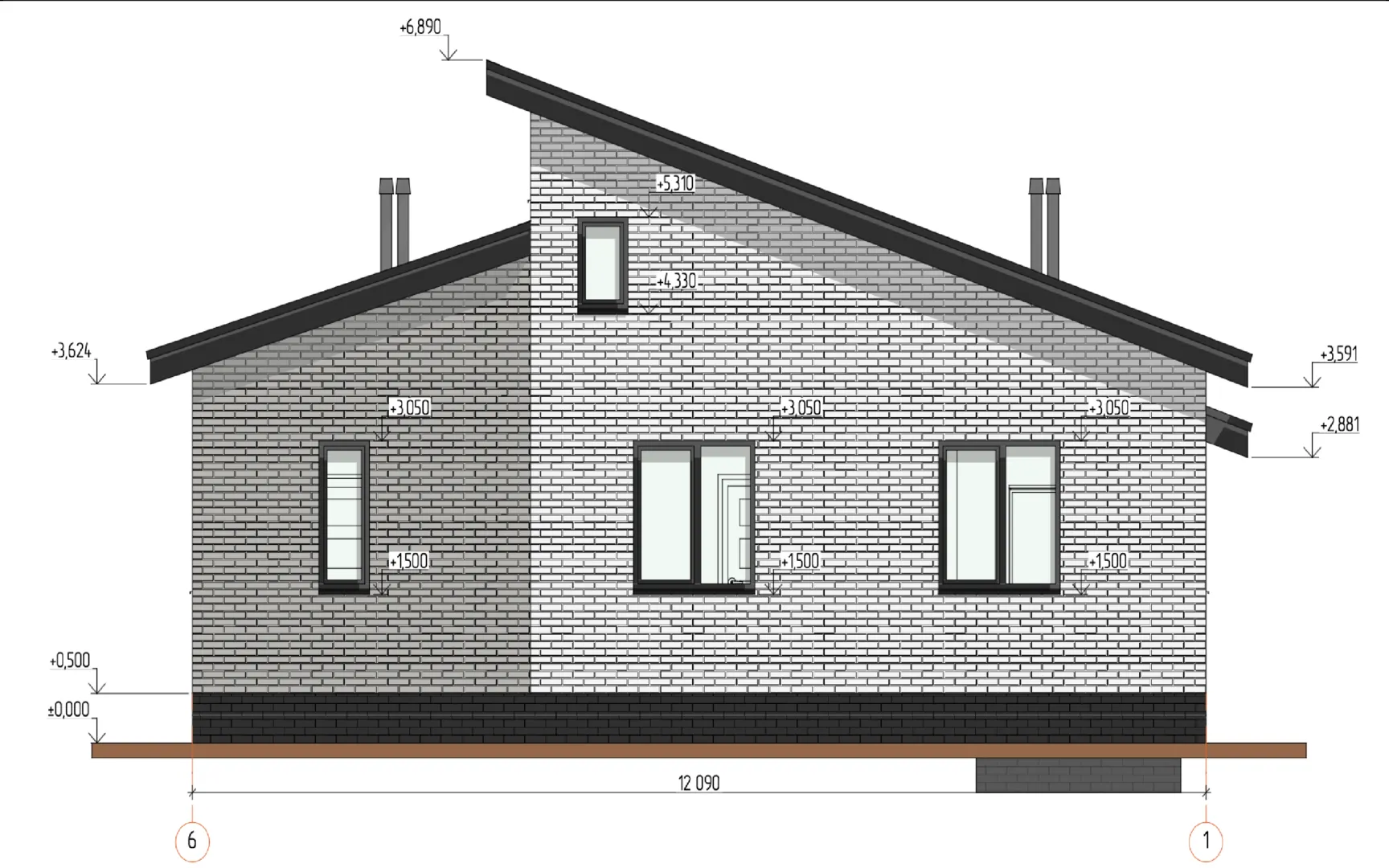 Заказать конусльтацию по:Кирпичный дом с односкатной кровлей