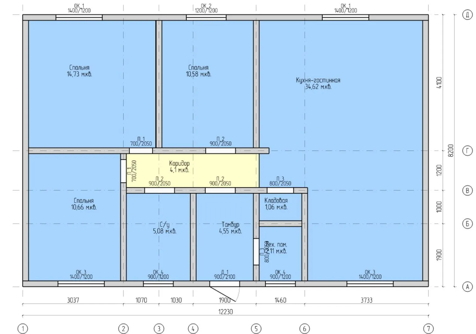 Одноэтажный жилой дом c тремя спальнями и крыльцом