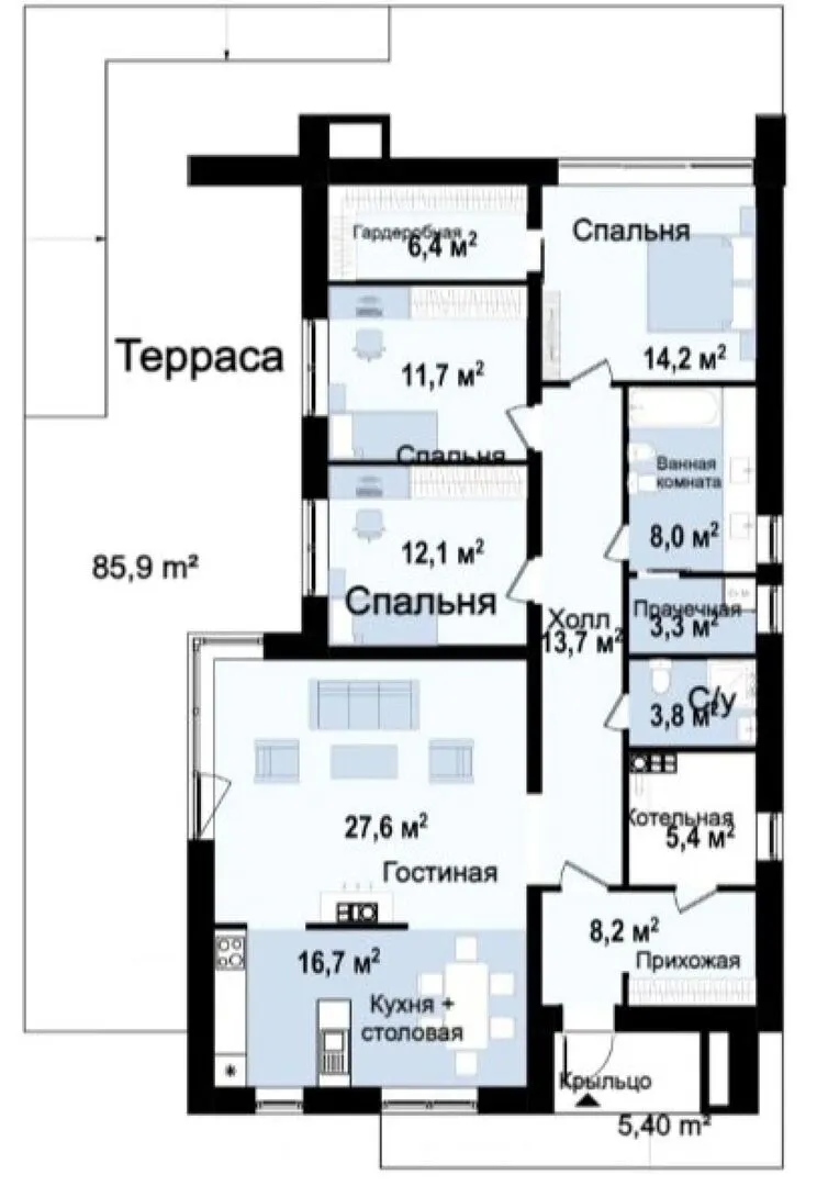 Заказать конусльтацию по:Комфортабельный одноэтажный дом в стиле хайтек S3-129-4 (Zx67)