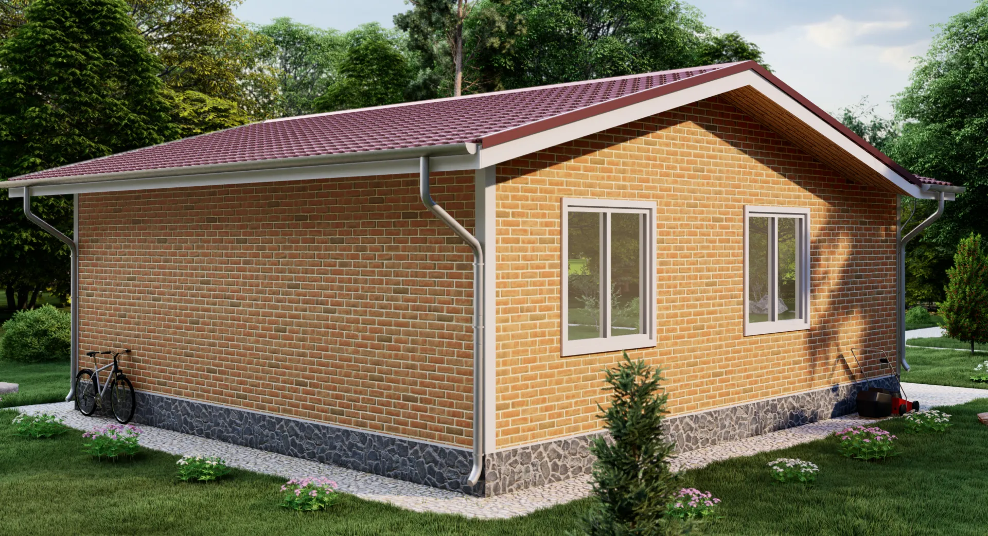Одноэтажный дом 85 кв.м., облицовка кирпич (85К)