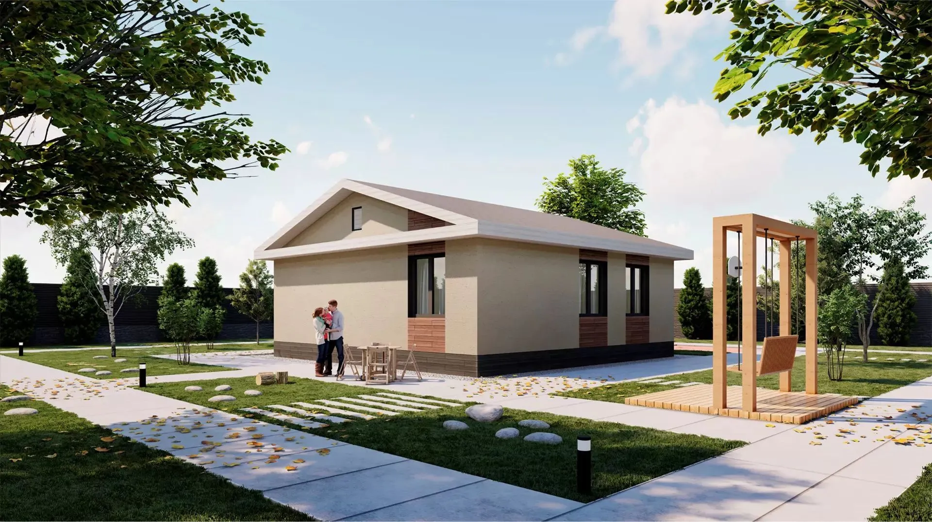 **Коттедж PG‑2 «Bona Fide» – ваш идеальный уголок уединения** Этот элегантный одноэтажный коттедж в скандинавском стиле создаёт ощущение простоты и уюта. Модель построена из сборного железобетона, что гарантирует прочность и долгий срок эксплуатации, а две стрельчатые крыши добавляют классическую элегантность и достаточное пространство для естественного освещения. Внутреннее пространство открыто и светло, благодаря продуманному плану, который легко адаптируется под любые ваши потребности. **Дизайн, который вдохновляет жить круглогодично** «Bona Fide» спроектирован так, чтобы оставаться идеальным жильем в любое время года. Внутренние помещения оборудованы современными технологиями утепления и вентиляции, а отсутствие внешних балконов и подземных помещений позволяет сконцентрироваться на уюте круглый год. Скандинавский стиль подчёркнут тонкими линиями, светлыми оттенками и природными материалами, создающими атмосферу спокойствия и гармонии. Не упустите шанс стать владельцем крошечного шедевра, где каждая детали продумана до мелочей – от прочной конструкции до стиля, который подчеркивает вашу индивидуальность. --- Сделайте ваш дом настоящим убежищем: дайте «Bona Fide» стать местом, где простота встречается с комфортом, а каждая минута дома – особым удовольствием.