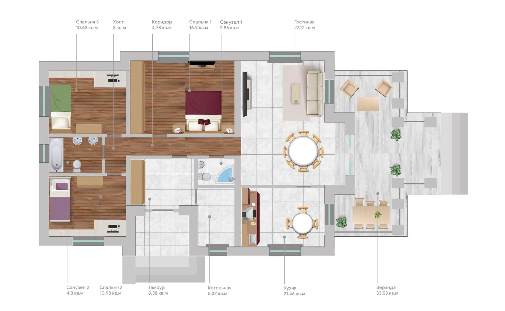 Уютный коттедж «Сириус» — это воплощение европейской элегантности в гармонии с природой. Зодчий изящно сочетает классические пропорции с современными решениями: открытая веранда приглашает к бесконечным летним и зимним вечерам, а просторное чердачное помещение оставляет место для творческих проектов или уютного домашнего офиса. Тот же простор обретает уют в нежных светлых интерьерах, где каждая деталь направлена на создание атмосферы семейного тепла. Соблюдая баланс функциональности и эстетики, дом построен из газобетонных блоков, что гарантирует тепло и шумо‑изоляцию на любой сезон. Четырехскатный, вальмовой плинтус придаёт фасаду строгий, но в то же время привлекательный вид, подчёркивая европейский стиль и строгий геометрический рисунок. Веранда и терраса открывают вид на окружающий ландшафт, создавая возможность наслаждаться природой в любое время года, а отсутствие балконов и лоджий делает интерьер более открытым и непринуждённым. Такой уютный уголок в стиле «сириус» станет идеальным выбором для тех, кто ценит комфорт, тепло и индивидуальность, ищет место, где можно отдохнуть от городской суеты и погрузиться в атмосферу истинного европейского шарма. Здесь каждый день начинается и заканчивается в объятиях природы и домашнего уюта.