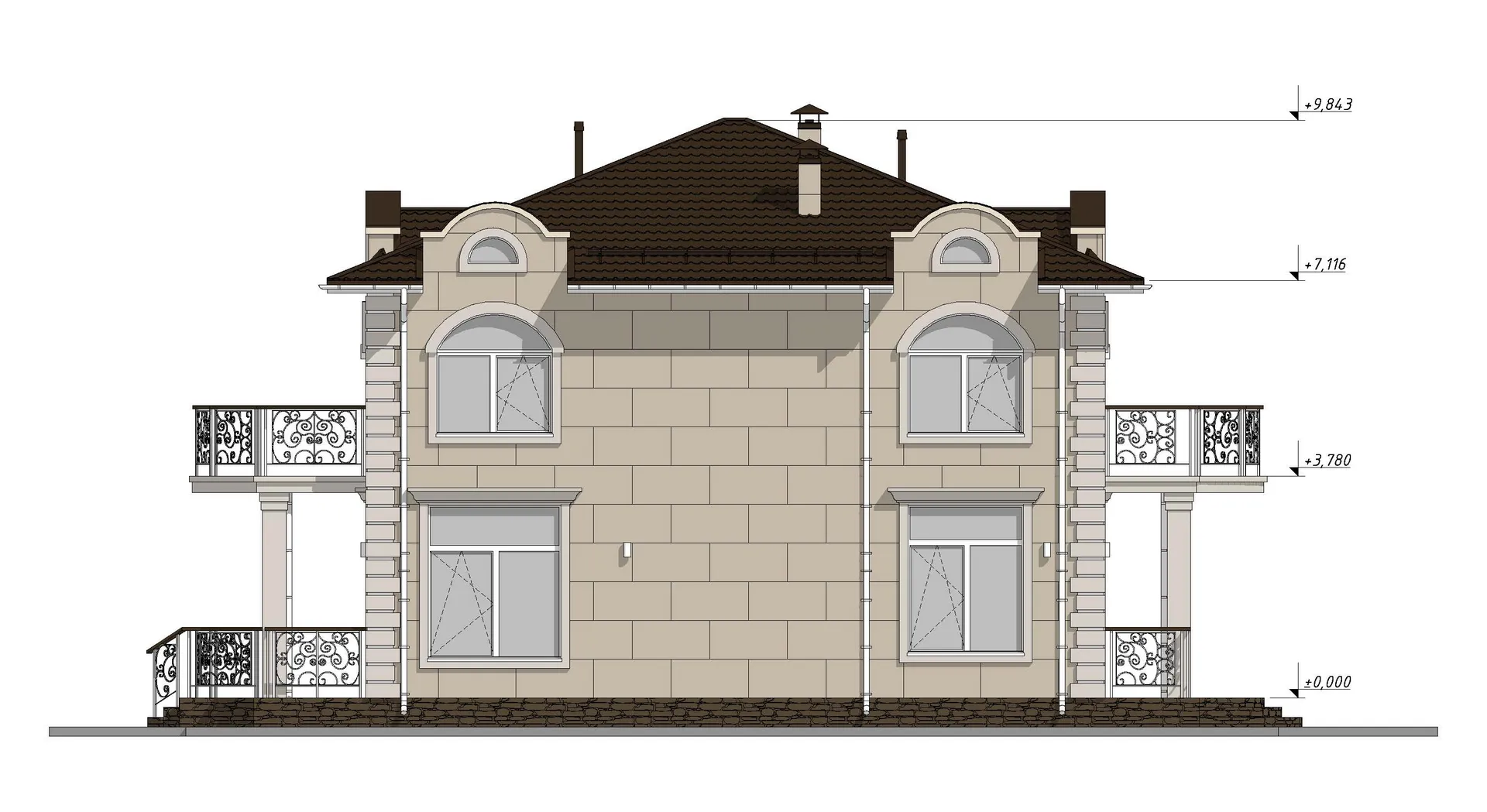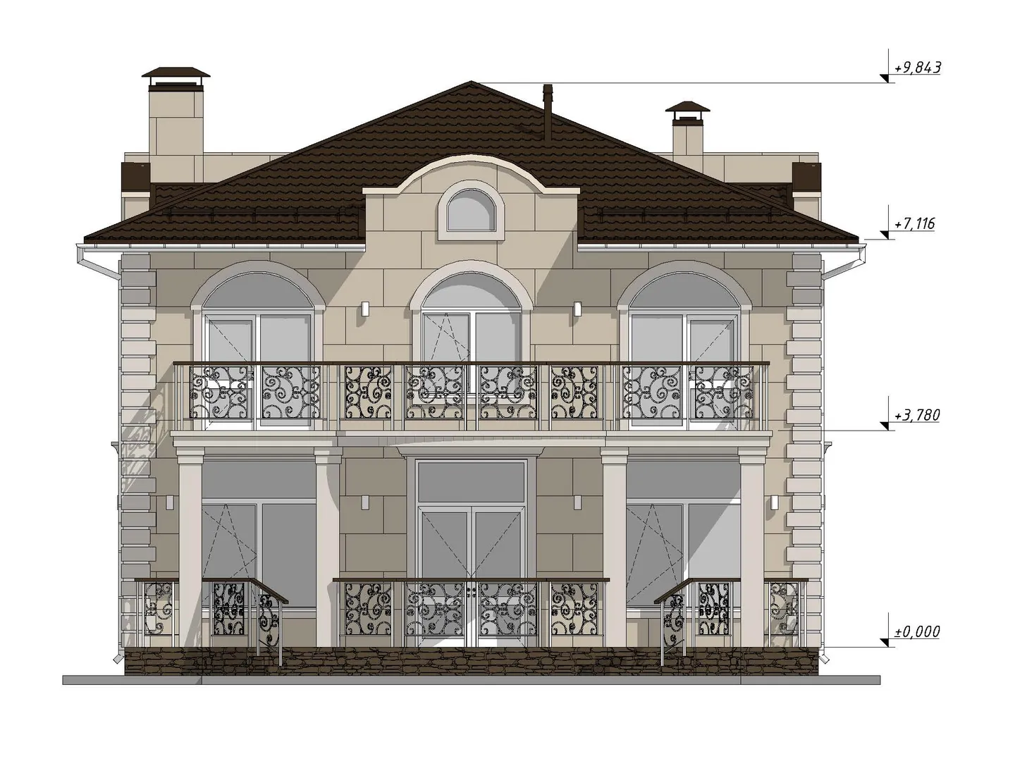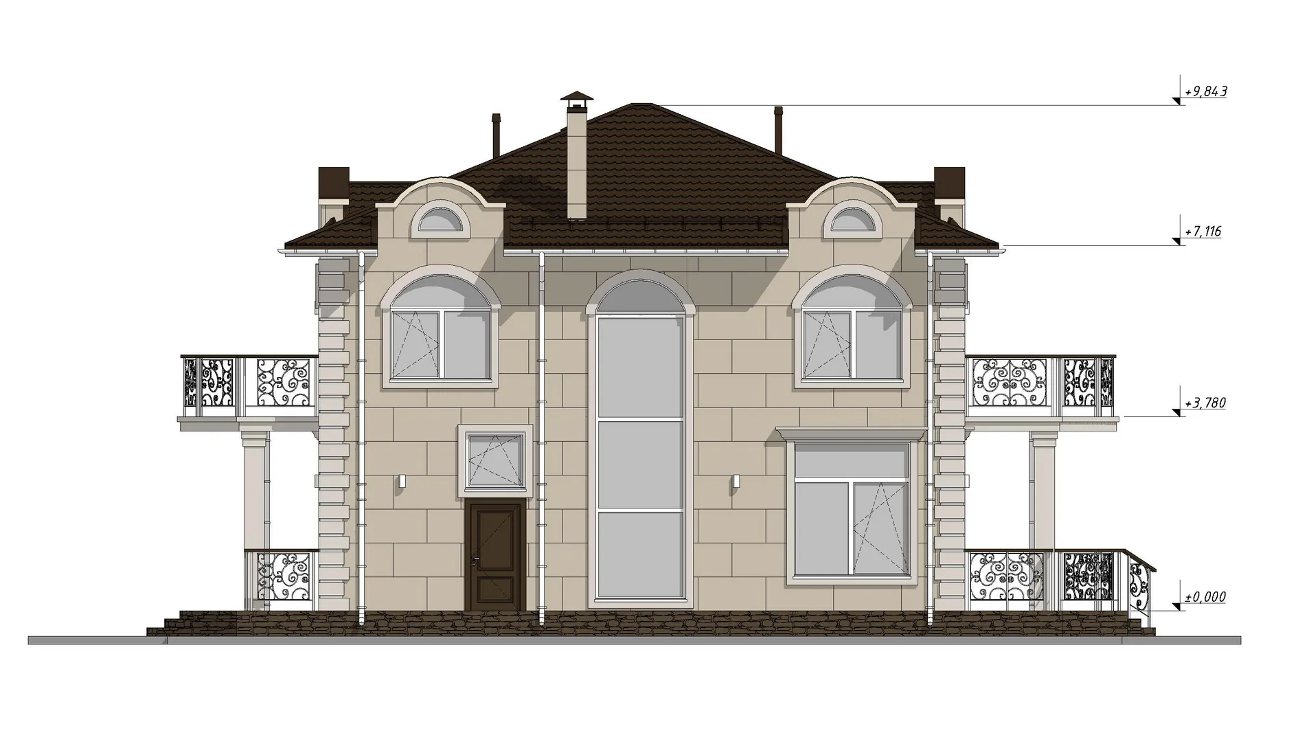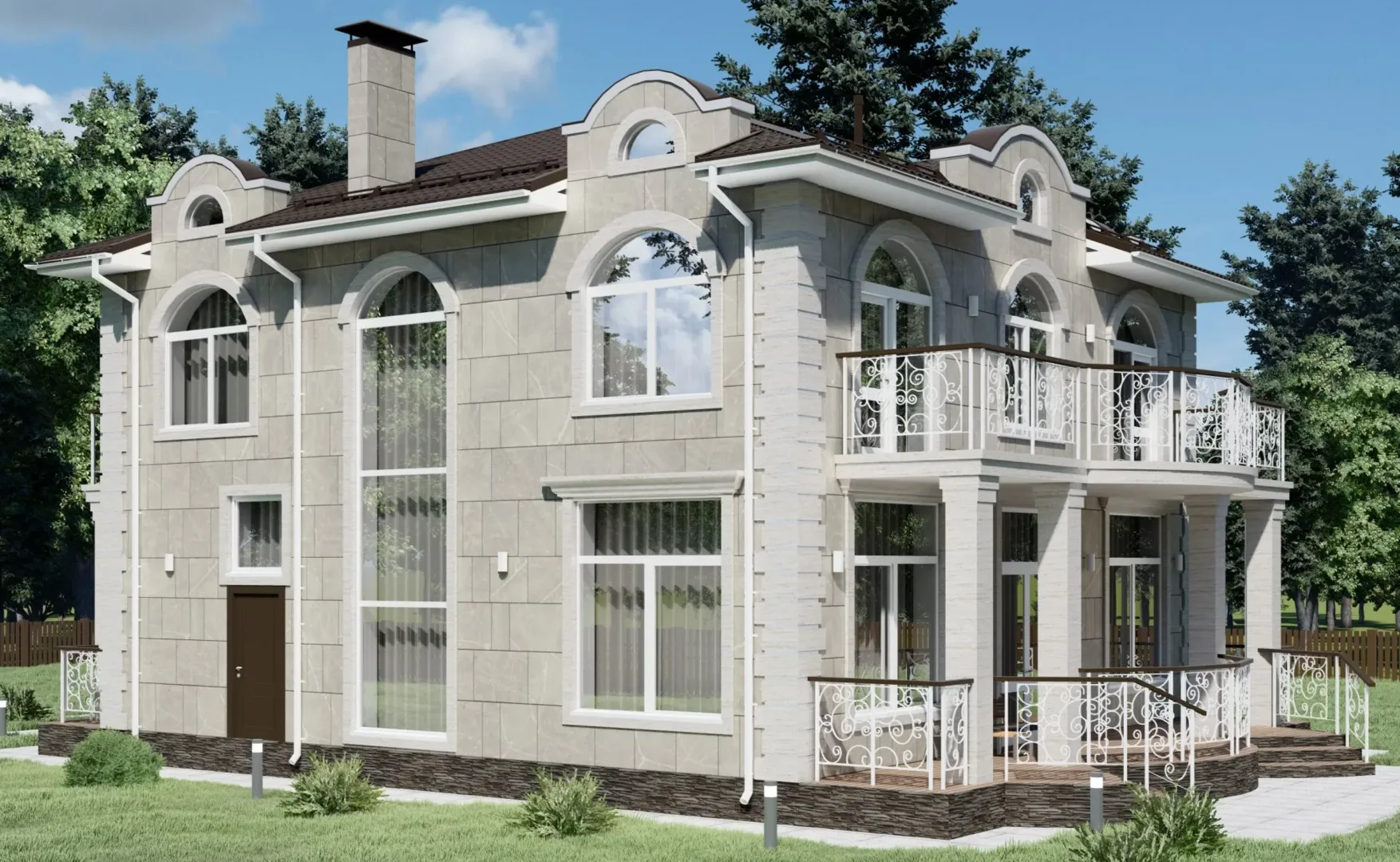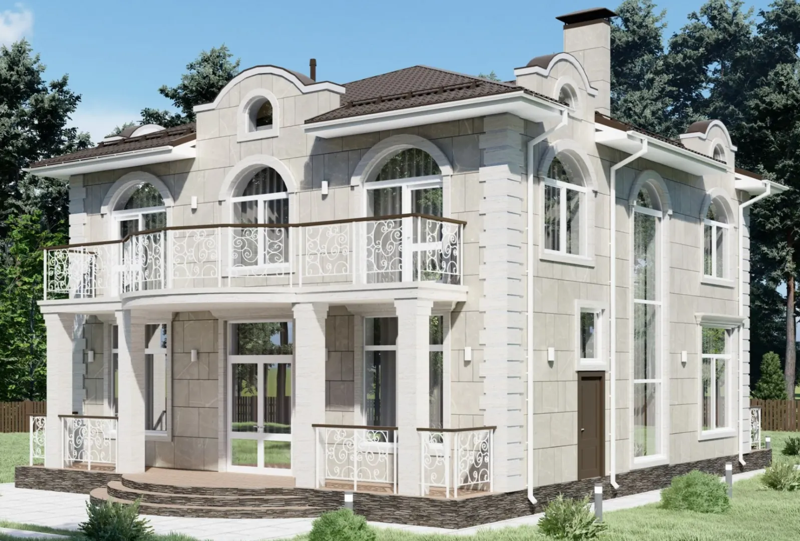 Заказать конусльтацию по:Красивый двухэтажный дом с большими балконами S-240