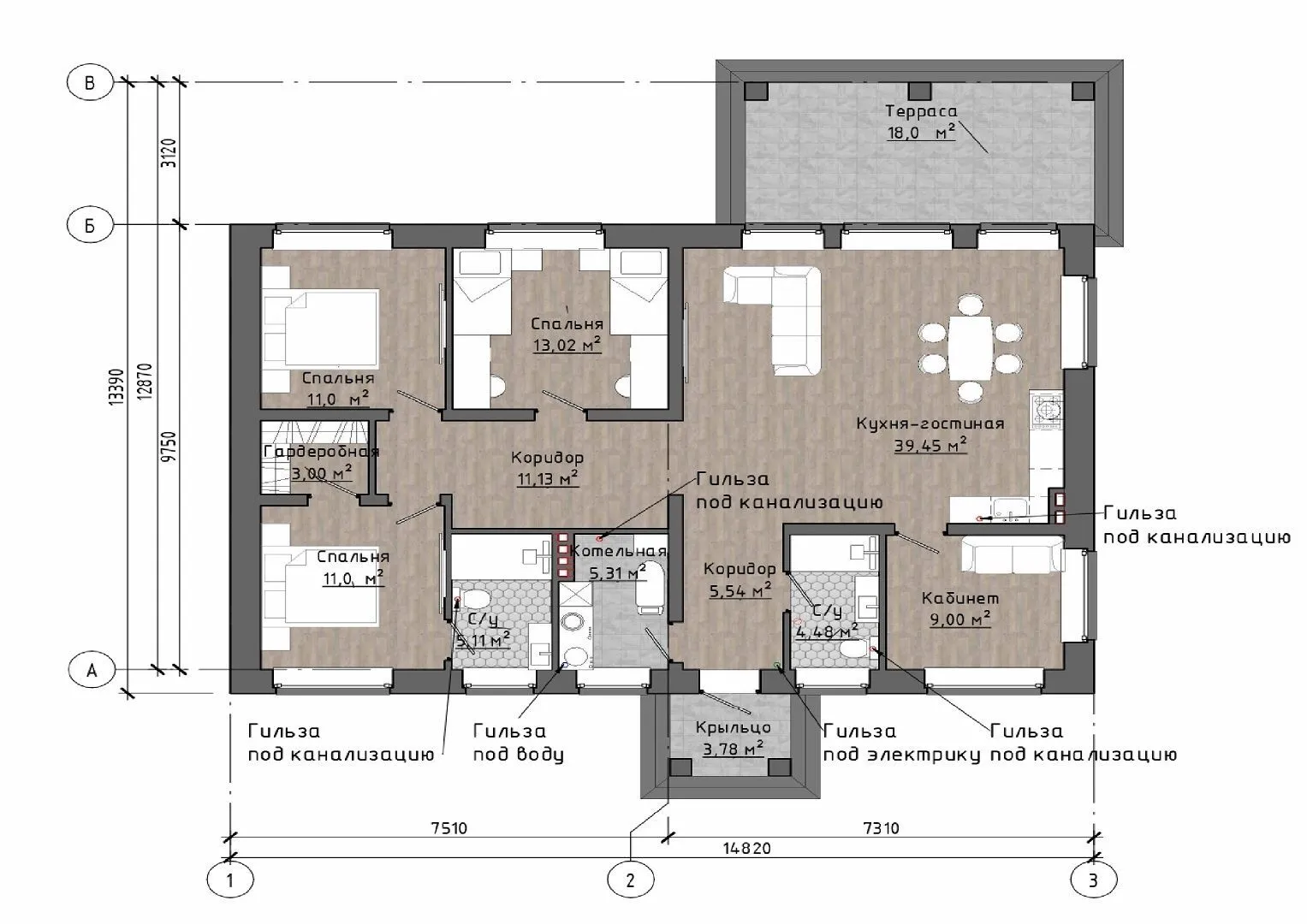 Вас ждет уютный, классический одноэтажный дом, где каждая деталь продумана до мелочей. Экономичный и практичный, он подарит комфорт круглый год: прочный кирпичный фасад не только выглядит стильно, но и защищает от ветра и влаги, а двускатная крыша обеспечивает надёжную защиту от осадков. Благодаря одному надземному этажу вы получите простую и удобную планировку, идеальную для семей с детьми, пожилых людей или тех, кто ценит свободное пространство и отсутствие лестницы. Дом без балконов и веранд придаёт ощущение чистоты и простора, а отсутствие прикрытой автостоянки и чердачного помещения делает облик здания лаконичным и классическим. Вместе с этим ваш новый дом подарит вам и вашим близким доступ к приятной террасе — здесь можно устроить летний барбекю, насладиться рассветом в тишине сада или просто отдохнуть после трудного дня. Ощутите атмосферу простого, но элегантного уюта, где каждая черта отвечает потребностям современного образа жизни.