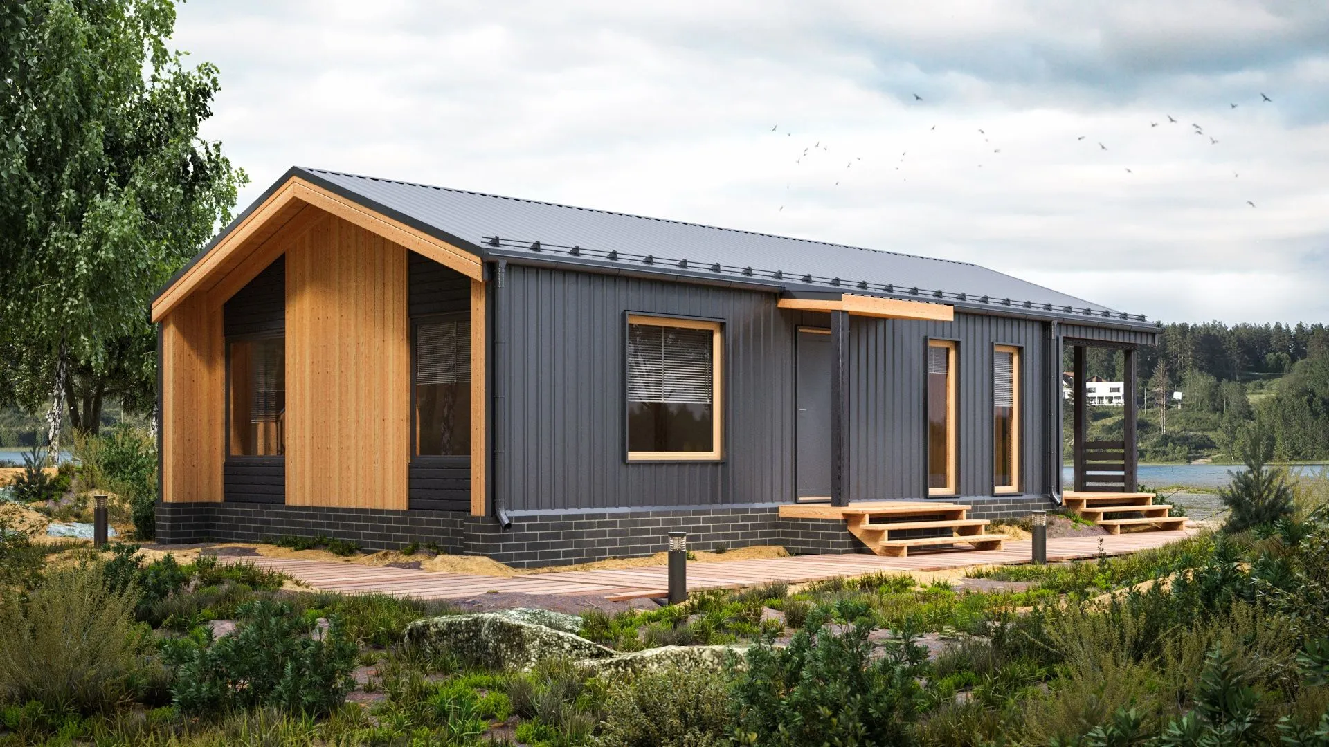 Уютная деревянная резиденция LATO‑60 приглашает окунуться в атмосферу настоящего английского барнойхауса, где каждая деталь пронизана теплом и характером. Экстерьер выполнен в классическом стиле: массивные деревянные панели, а к крышу обрамляющим его двойной уклон, который не только добавляет визуального шарма, но и обеспечивает отличную тепло- и звукоизоляцию. Просторный открытый план, выполненный в едином стиле, обтекается от гостиной к уютному кухонному уголку, создавая непрерывное пространство для общения и развлечений. Великолепный внутренний свет, подчеркивающий естественные материалы, делает каждый день здесь ярким и приятным. Дом легко адаптируется под любой сезон: тепло года в стенах сохраняется, а зимний холод не добирается до внутреннего пространства благодаря утепленным деревянным каркасам и надежной двойной крыше. В единственном балконе/лоджии открывается живописный вид на грядки и деревушки в окружении, а просторная терраса – идеальное место для летних барбекю и вечеров под звездами. Отсутствие прицепленного гаража и чердака позволяет использовать территорию максимально свободно – для сада, дач, игровых площадок. LATO‑60 станет вашим уютным уголком, где гармония природы и современного комфорта соединяется в идеальном пространстве для жизни и отдыха.