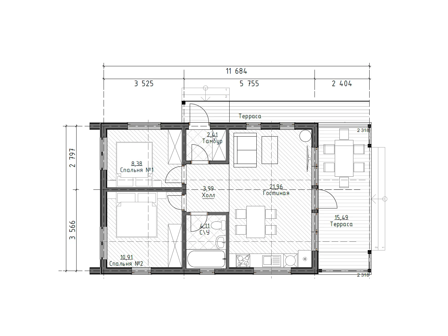 Площадь дома 52 м2