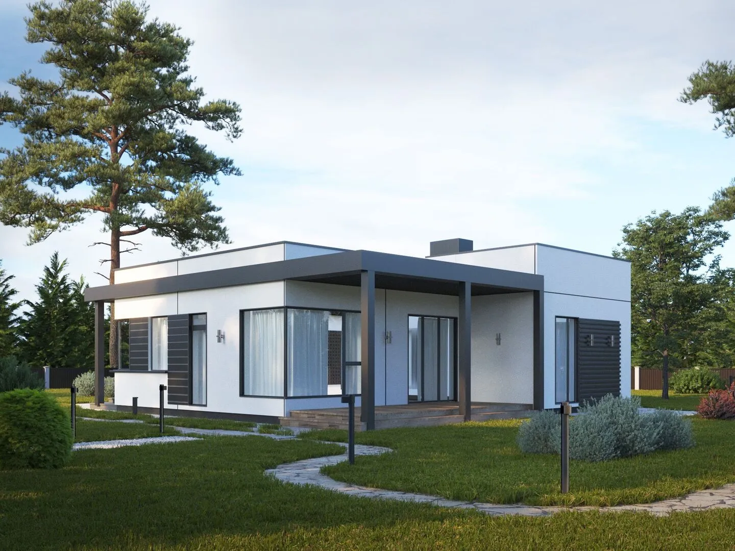 **LUMI 100 Monolit** – это воплощение современных технологий в компактном объёме. Единственный надземный этаж придаёт дому лёгкость и открывает простор в каждой комнате. Внутреннее пространство продумано до мельчайших деталей: светлые, свободные зоны, изуродованные окна обрамлены глянцевыми поверхностями, создавая ощущение простора и благоприятную циркуляцию воздуха. Благодаря высококачественной системе изоляции и энергоэффективным материалам, это дом позволяет комфортно проживать круглый год, даже в самые прохладные зимние дни. Терраса, выходящая из гостиной, – ваш личный оазис на фоне городской суеты. Здесь можно устроить уютный обед, устроить вечерний отдых с видом на панораму города, а также наслаждаться прохладой солнечного заката. Архитектурный стиль хай‑тек подчёркивает современность и минимализм, гармонично сочетаясь с материалом внешних стен – сборным железобетоном. Плоская крыша не только подчёркивает лаконичную линию фасада, но и открывает дополнительные возможности для установки солнечных панелей, что делает ваш дом более экономичным и экологичным. Это дом – место, где современность встречается с уютом, а функциональность с элегантностью. Если вы ищете компактное, но полностью оснащённое жильё, готовое встретить любые погодные условия, LUMI 100 Monolit станет вашим идеальным выбором – стильный, комфортный и практичный.