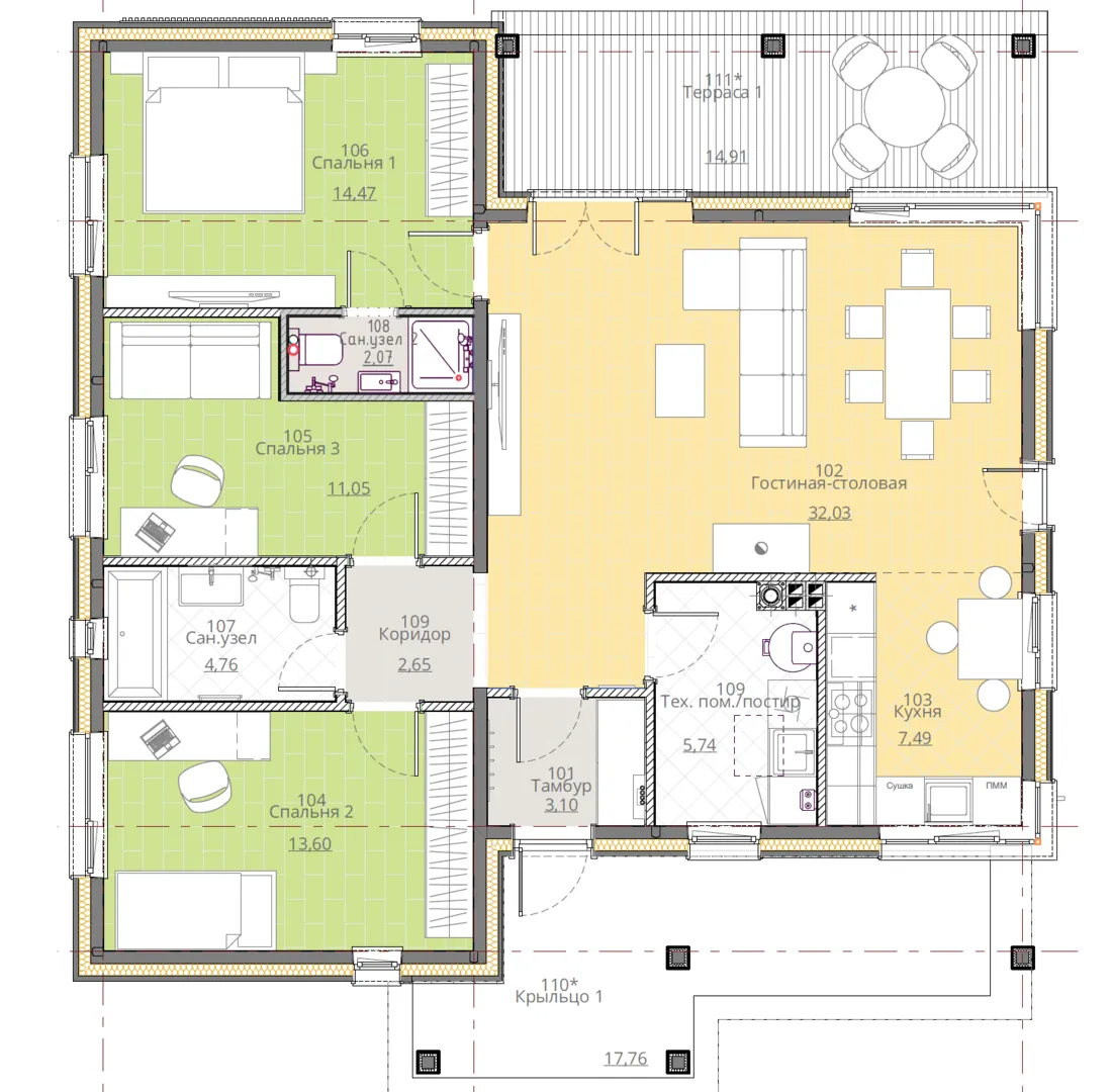 Одноэтажный дом ПГ -10