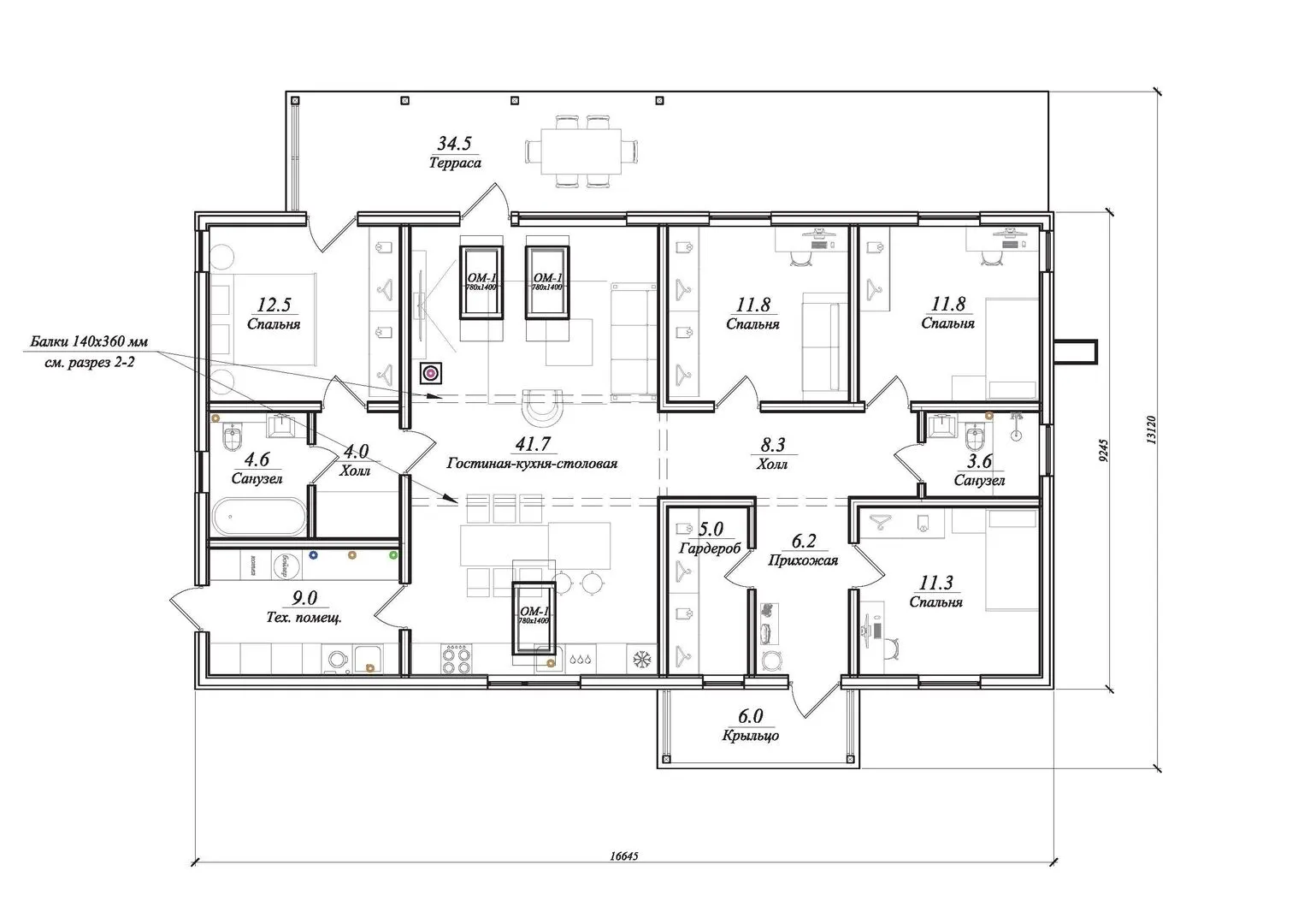 795А «Аметист» — одноэтажный дом, 3 спальни, терраса