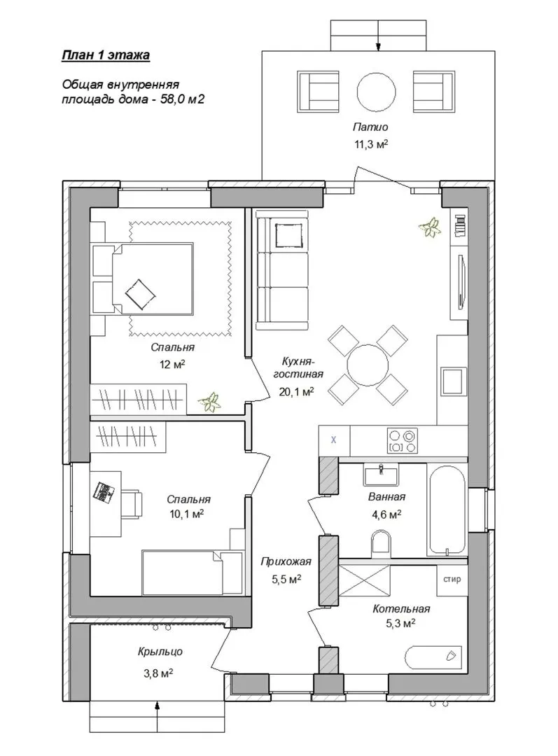 Площадь дома 58 м2