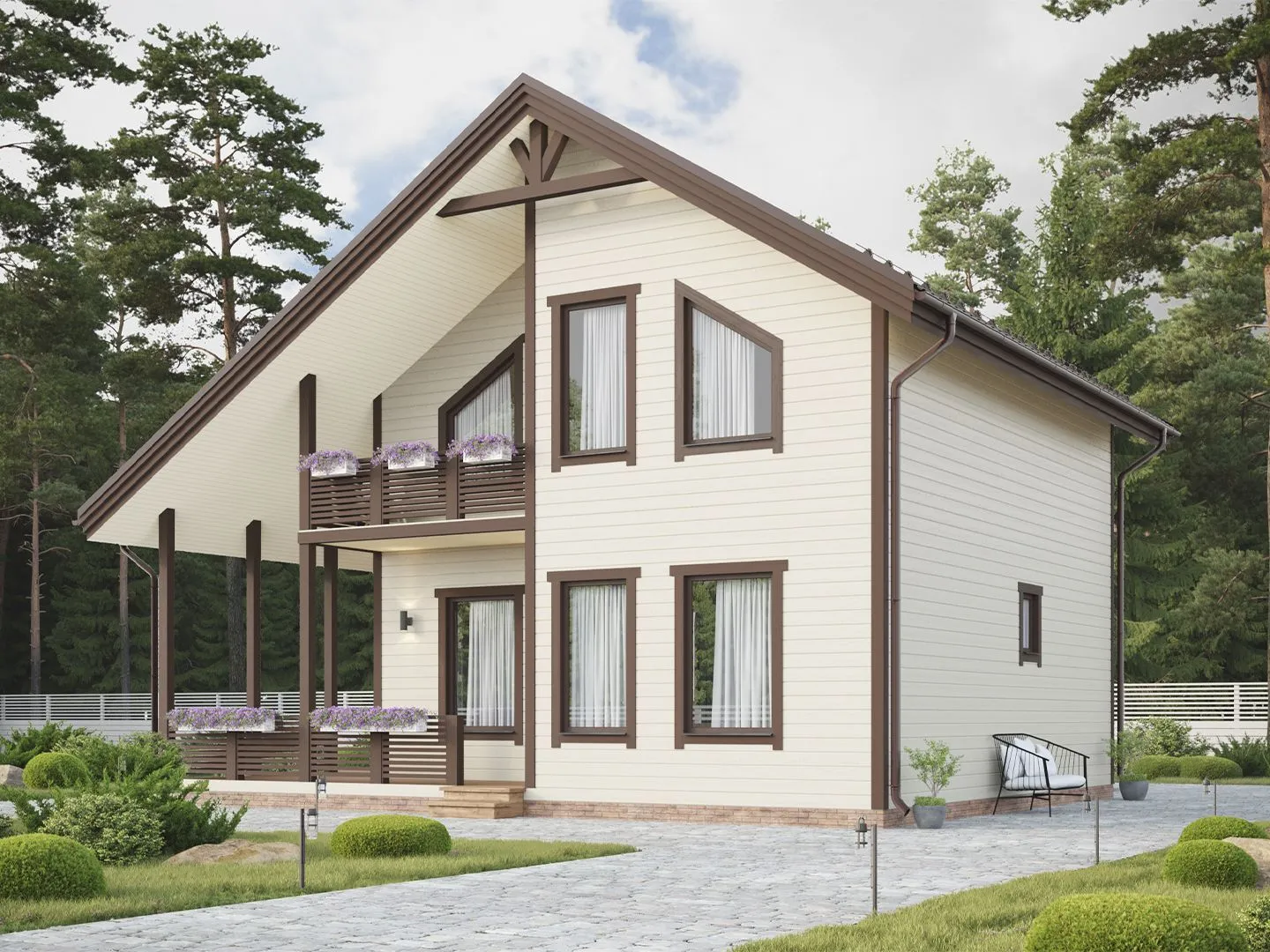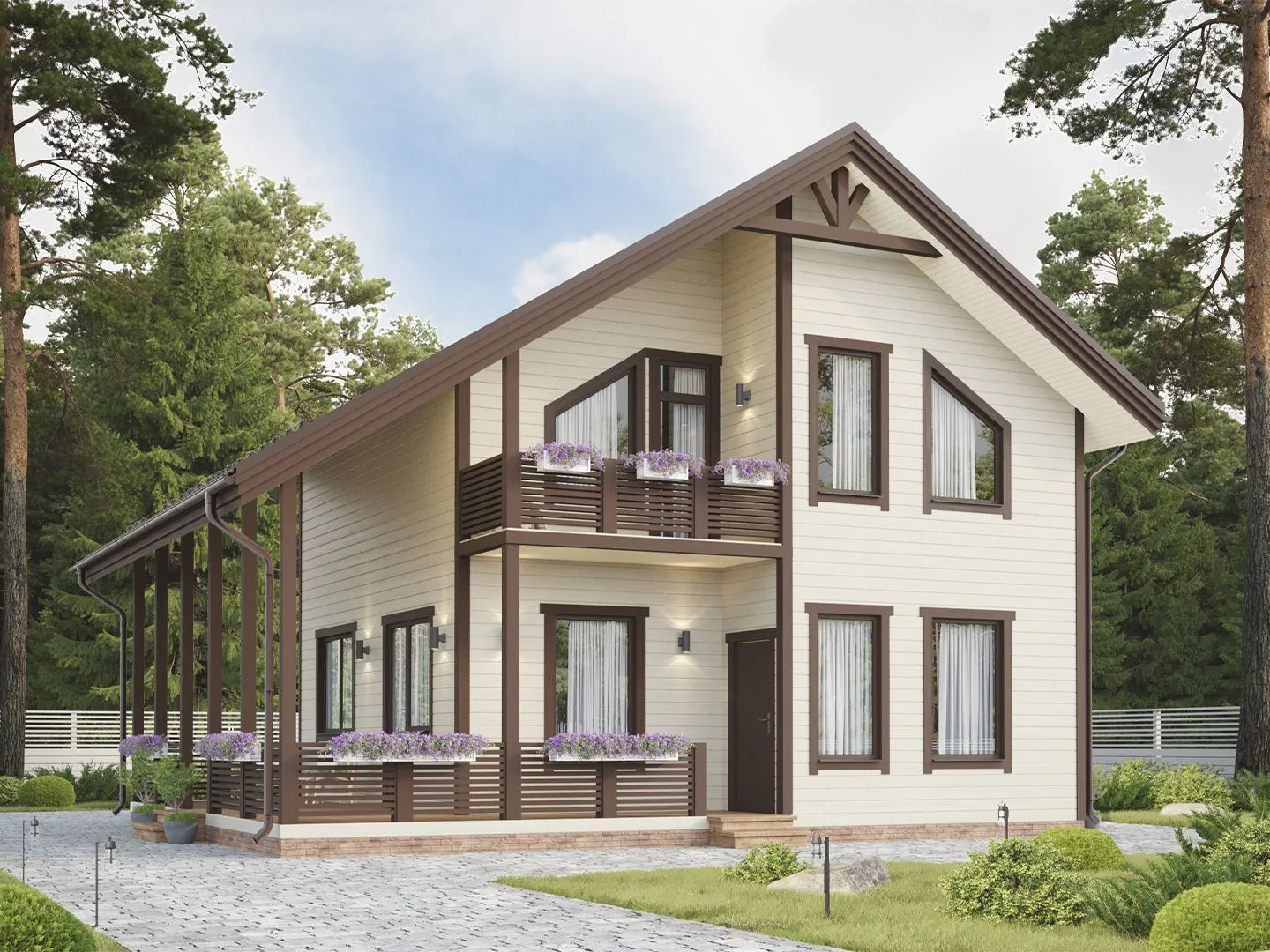 **Дом «Майоров»** — это настоящий уютный уголок, где классический стиль соединяется с практичностью и природной красотой. На двух надземных этажах каждый угол хранит гармонию традиций и современных удобств, а теплый, деревянный каркас обрамляет пространство, в котором всегда царит приятная атмосфера. Гибкая планировка и наличие чердачного помещения позволяют творить, хранить и отдыхать в свободной, приятной обстановке — такому дому легко найти своё сердце. Идеальное сочетание – круглогодичное проживание, двускатная крыша с характерным кранжевым рисунком и крытая автостоянка, создают ощущение защищенности и уюта. Один уютный балкон, выходящий во внешнее пространство, предлагает место для утреннего кофе и вечерних бесед. Плюс к этому просторная терраса приглашает к летним пикникам и романтическим вуальям закатов, а чердачное помещение добавляет гибкости в использовании пространства для детских игр, хобби, хранения. Этот дом — это не просто жильё, а настоящая сказка, где каждый элемент продуман, а детали придают особый колорит. Если ищете место, где каждый день начинается как волшебство и где традиционная архитектура встречается с современными удобствами, «Майоров» ждёт именно вас.