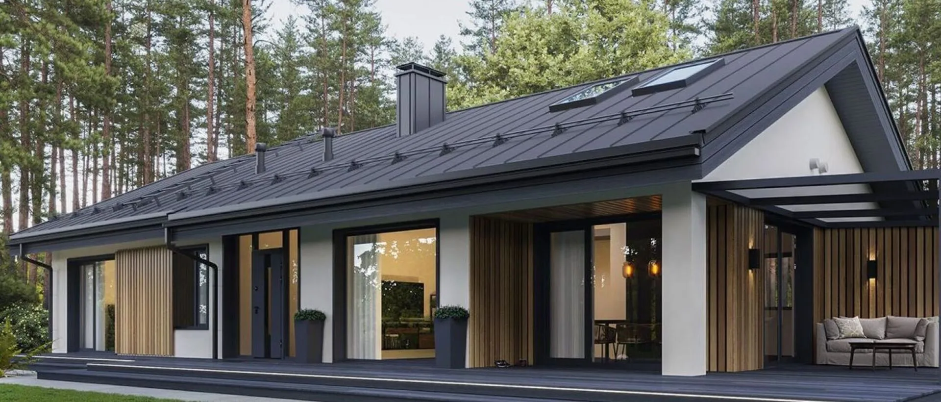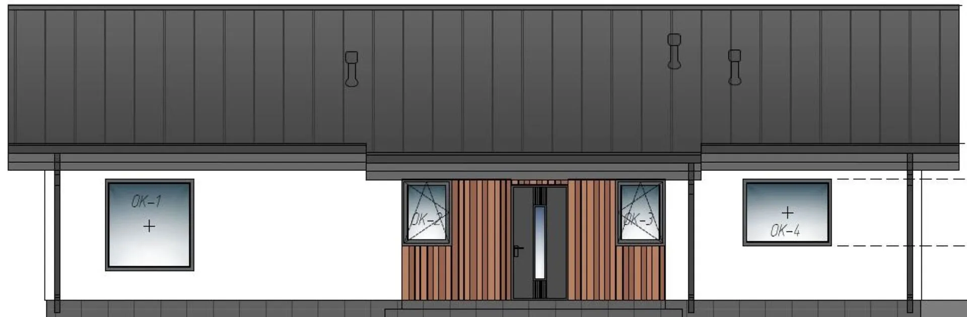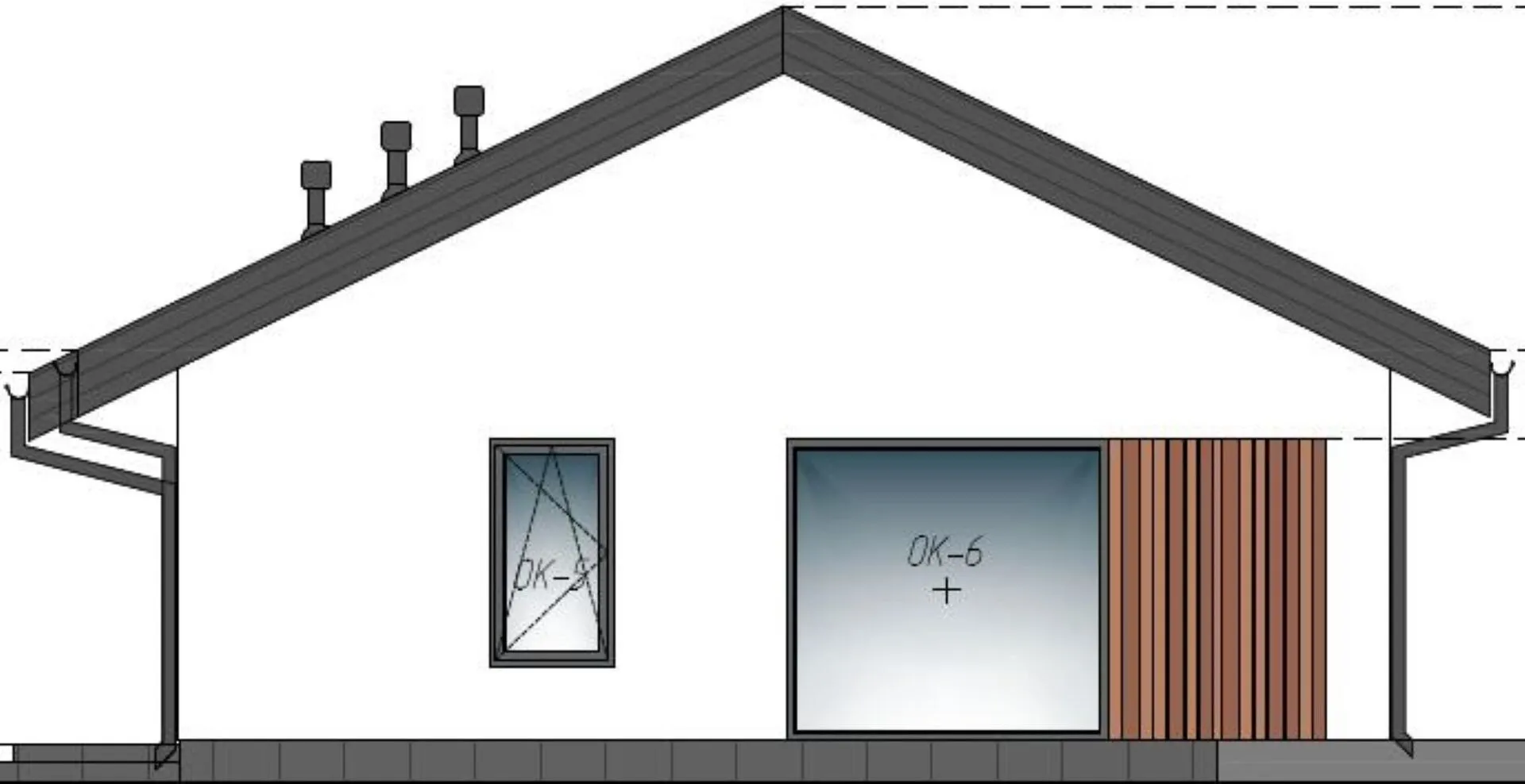 Добро пожаловать в **МИКЕЯ 5** – одноэтажный дом, где европейский стиль и уют встречаются воедино. Просторная веранда приглашает проводить вечера, наслаждаясь свежим воздухом, а терраса, раскинувшаяся над живописным участком, становится идеальным местом для завтрака или романтического ужина под звёздами. Стены из газобетонных блоков дарят комфорт и тепло, а двускатная крыша добавляет ощущение простора и свободы. Одностояя конструкция обеспечивает круглогодичную пригодность: вы будете чувствовать себя уверенно даже в суровых погодных условиях. Чердачное помещение превращается в уютное кладовое пространство или дополнительный жилой уголок, если нужно. Это дом, где каждая деталь продумана, но при этом сохраняется простота и легкость ухода – идеальное решение для тех, кто ищет гармонию и спокойствие, но не хочет жертвовать стилем.