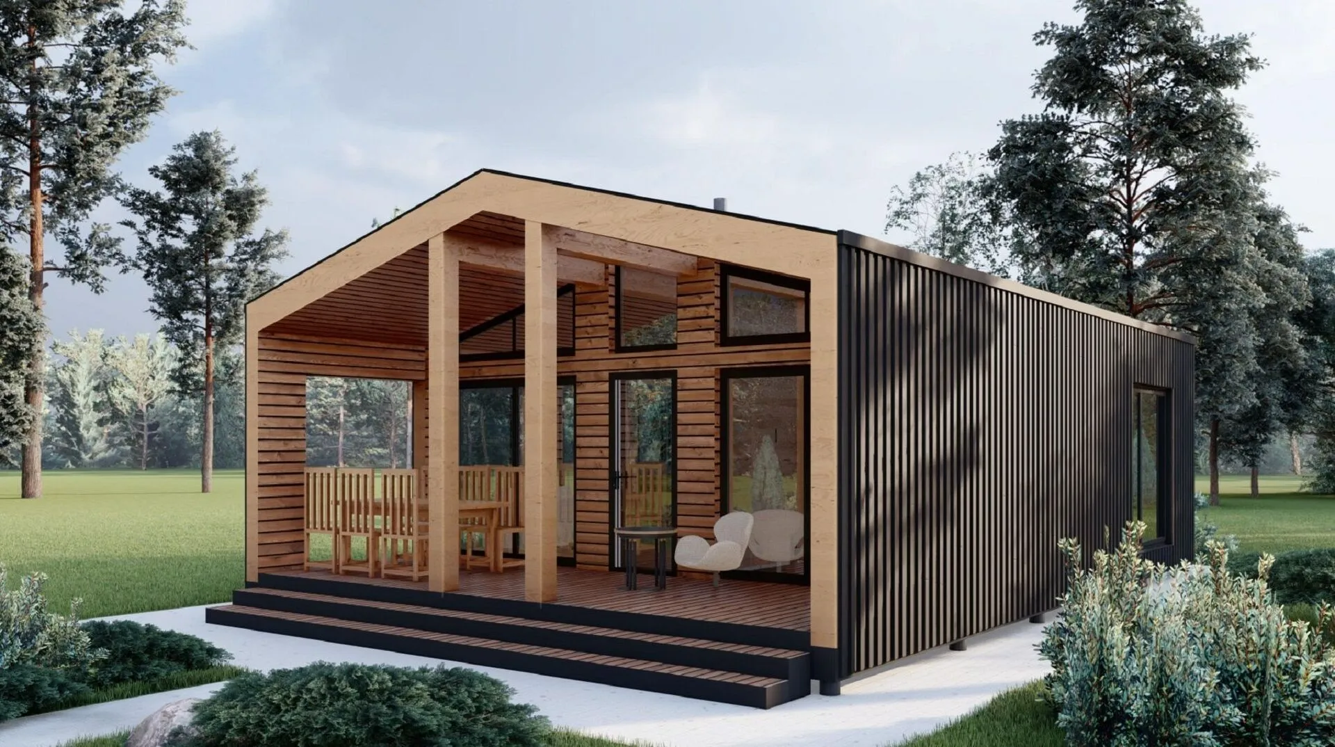 Строительство деревянных каркасных домовСтроительство домовСтроительство домов без балкона или лоджииСтроительство домов без гаражаСтроительство домов без чердакаСтроительство домов в стиле БарнхаусСтроительство домов для круглогодичного проживанияСтроительство домов с верандойСтроительство домов с двускатной крышейСтроительство домов с террасойСтроительство одноэтажных домов