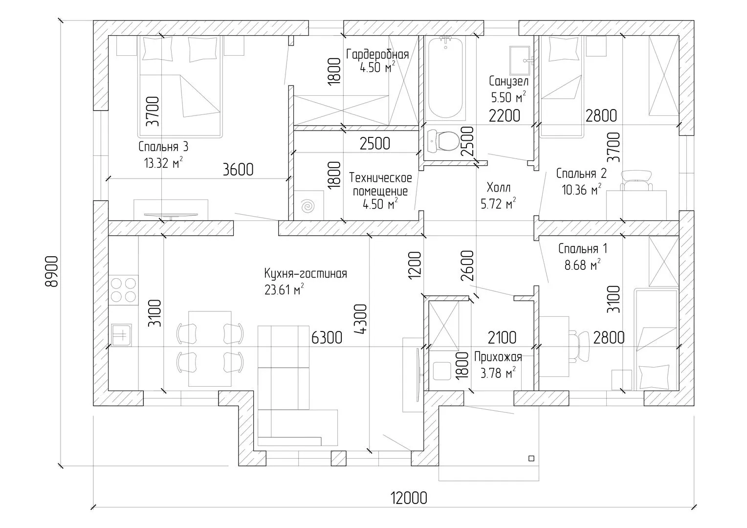 Одноэтажный жилой дом р118