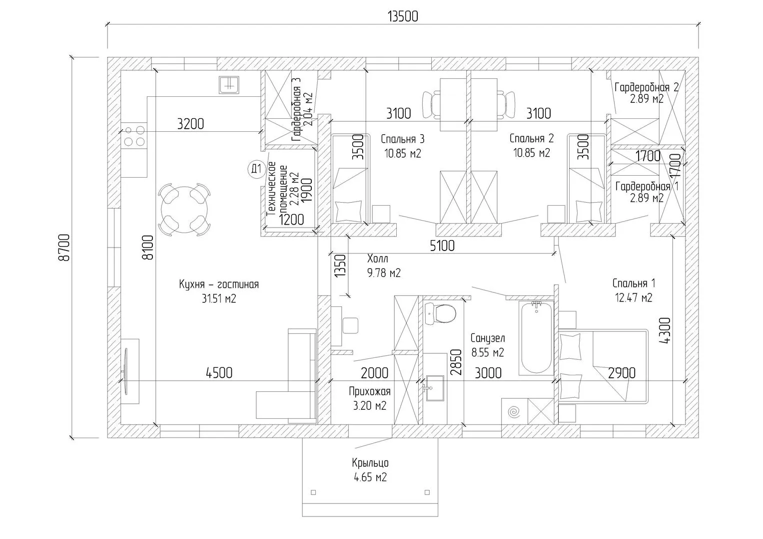 Площадь дома 104 м2