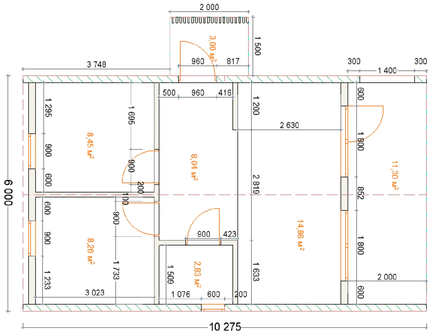 Толщина внутренних перегородок
