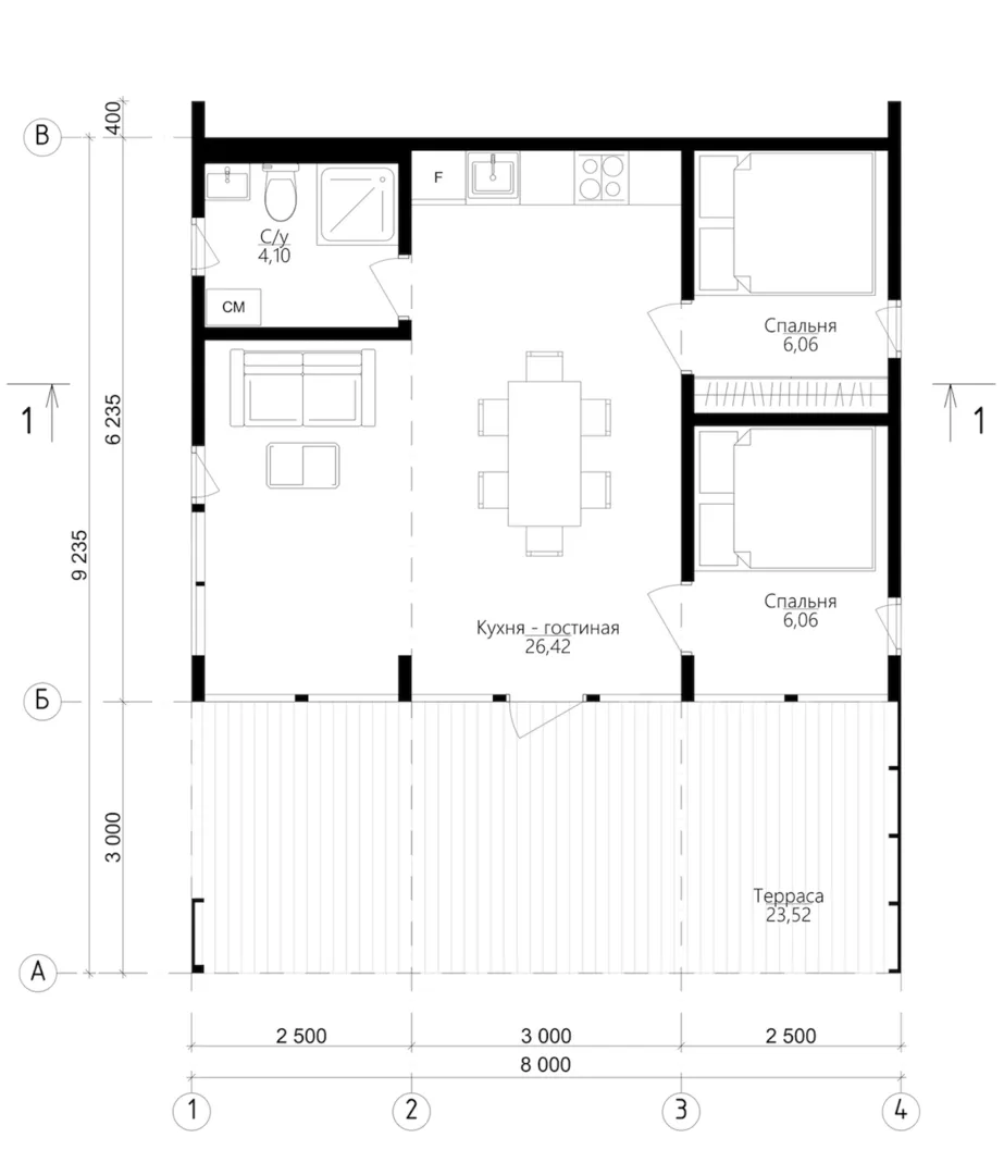 Строительство деревянных каркасных домовСтроительство домовСтроительство домов без балкона или лоджииСтроительство домов без гаражаСтроительство домов без чердакаСтроительство домов в стиле БарнхаусСтроительство домов для круглогодичного проживанияСтроительство домов с верандойСтроительство домов с двускатной крышейСтроительство домов с террасойСтроительство одноэтажных домов