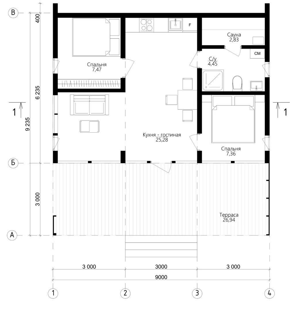 Одноэтажный каркасный дом «Венес»