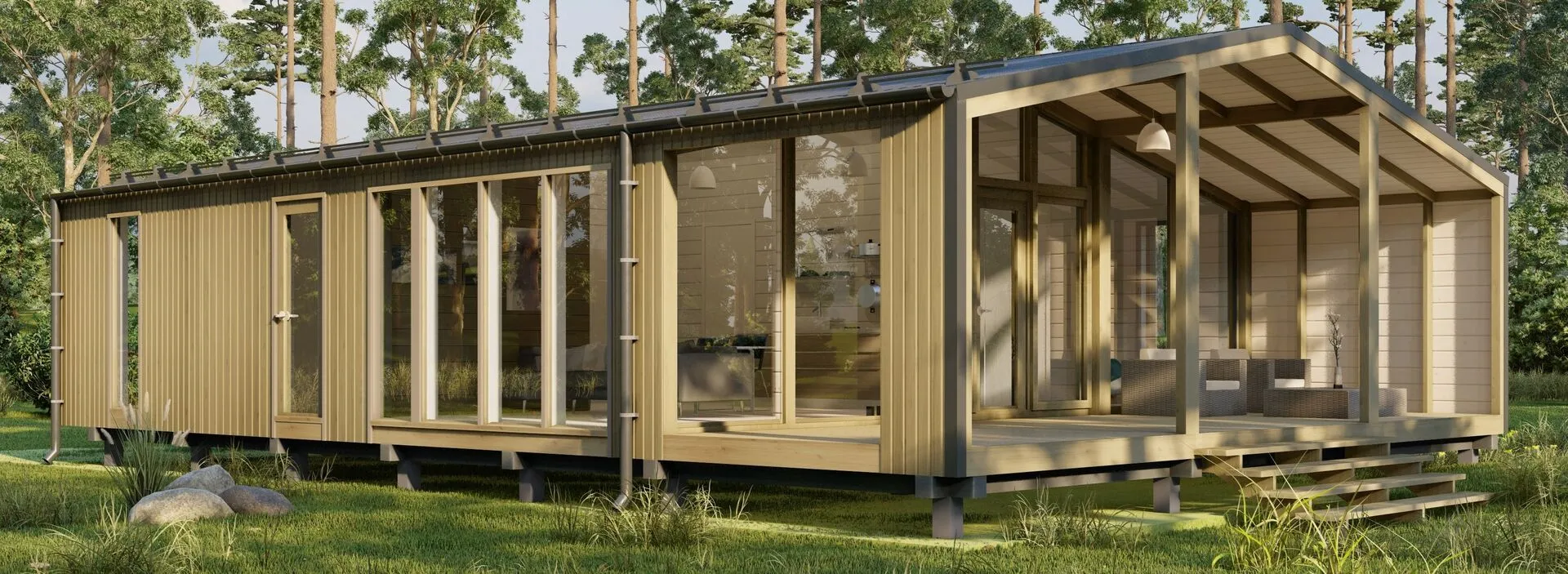 **Модульный дом FL 77 (МА77)** — это настоящая жемчужина для тех, кто ценит гармонию простоты и современного комфорта. В одной уютной планерке располагается просторный, светлый интерьер, который благодаря деревянному каркасу и барнхаусному стилю наполняется теплом и природной атмосферой. В доме предусмотрено круглогодичное проживание: мягко утепленные стены и аккуратный двускатный профиль обеспечивают стабильную температуру даже в холодные дни. Здесь уютно и тихо, а большие окна пропускают кристальный свет. Отсутствие балконов и веранд подчёркивает упор на внутренний комфорт, а при наличии террасы можно наслаждаться восходами и закатами прямо из гостиной, создавая романтическую атмосферу. Внешняя отделка деревянными панелями придаёт дому характерный «сырой» шарм, подчёркивая рустикальный колорит. Если вы ищете современное жильё, при этом не отказываясь от традиционного стиля, модульный дом FL 77 станет идеальным выбором для вашего уютного уголка.