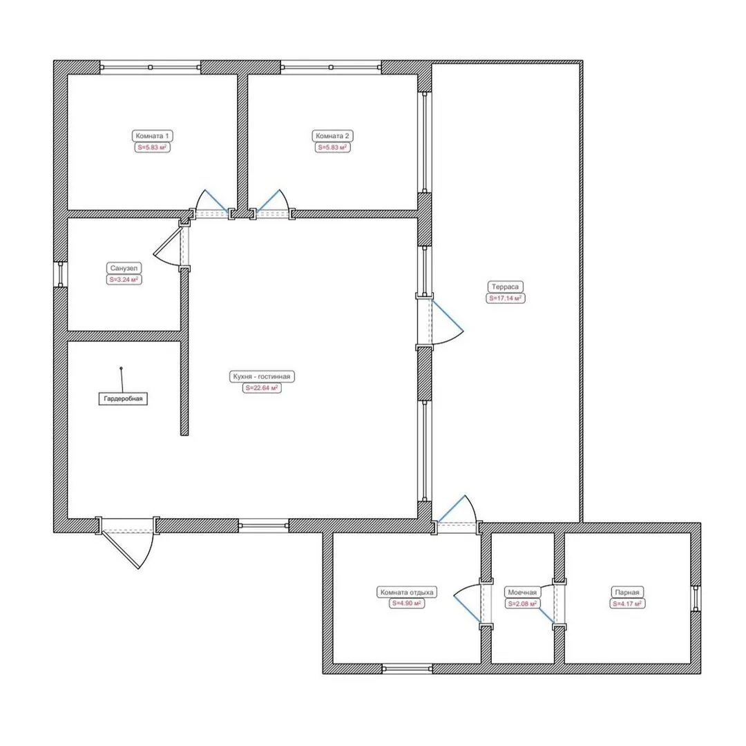 Модульный каркасный дом с парной и верандой серии «Эстэр 9,9 х 8,4 м»