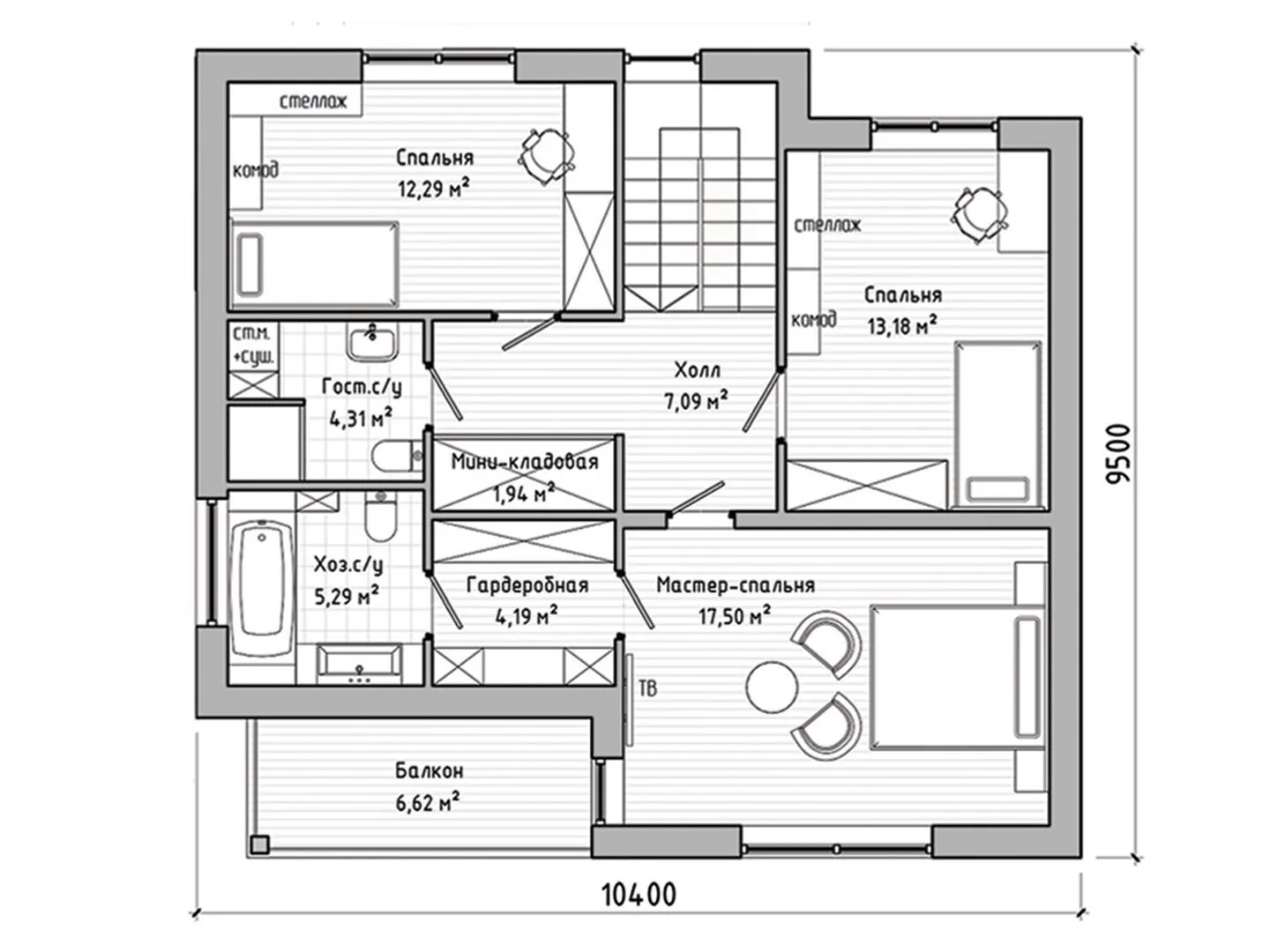 Двухэтажный коттедж С95