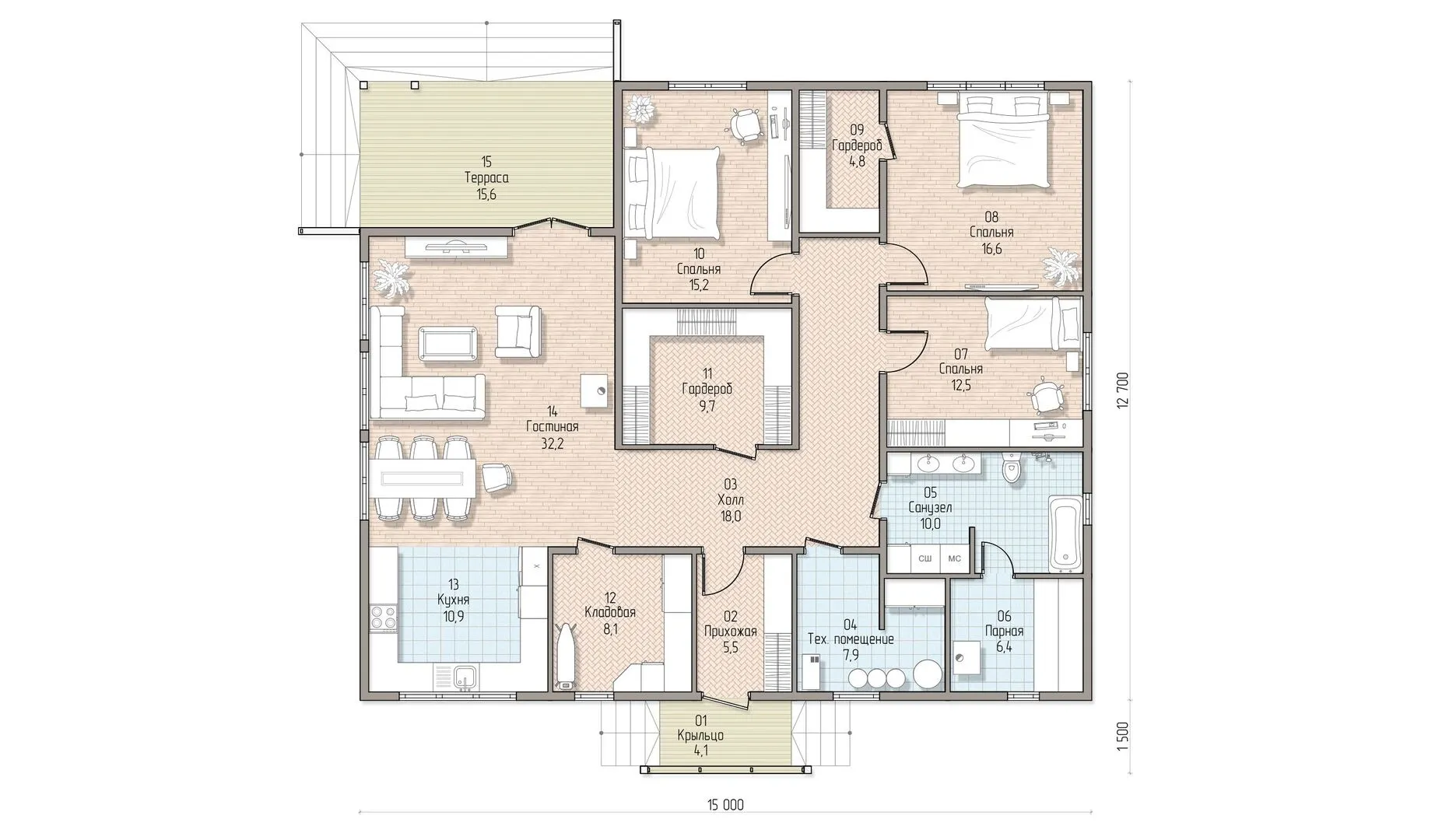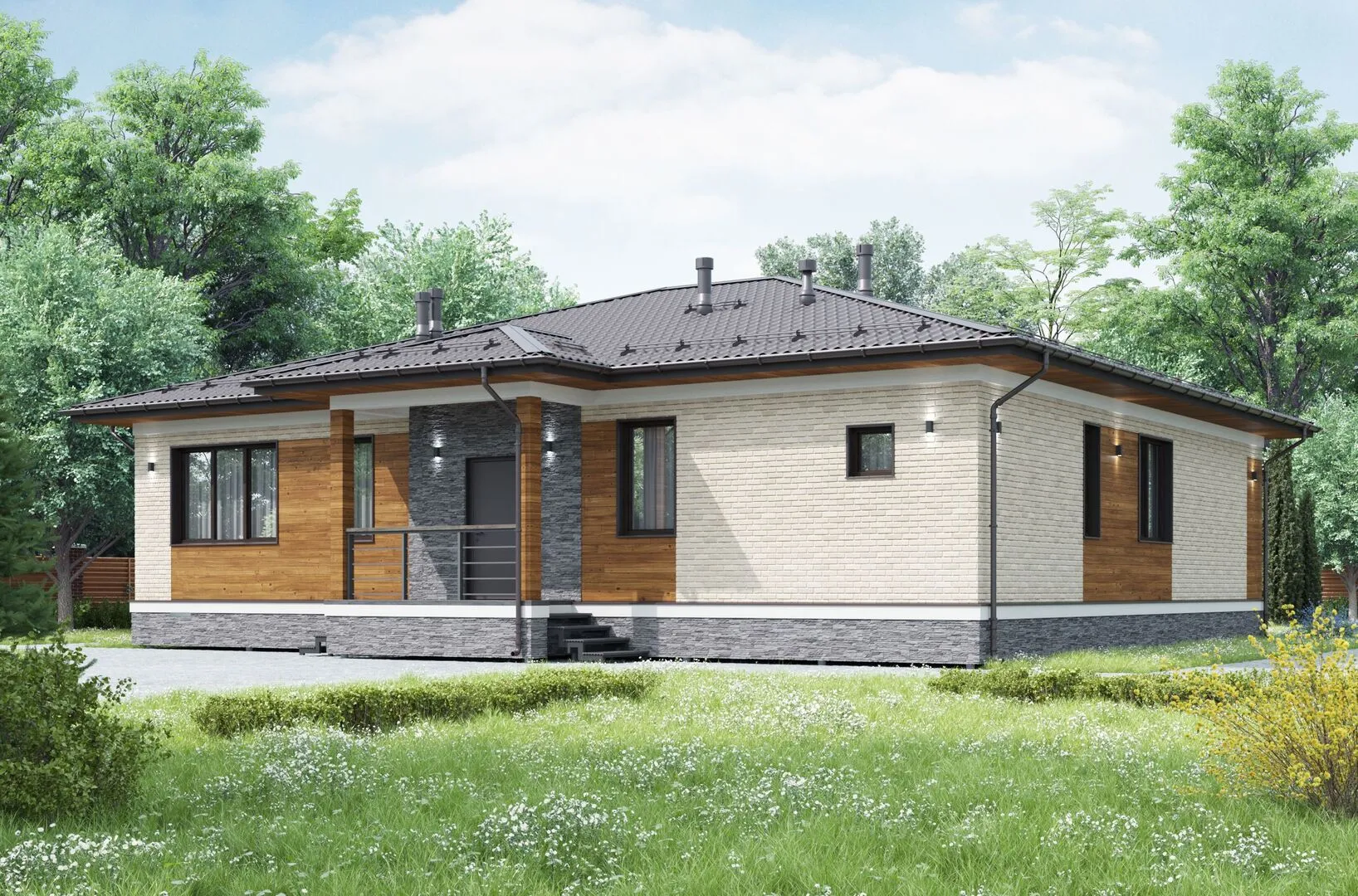Одноэтажный дом в классическом стиле К-87