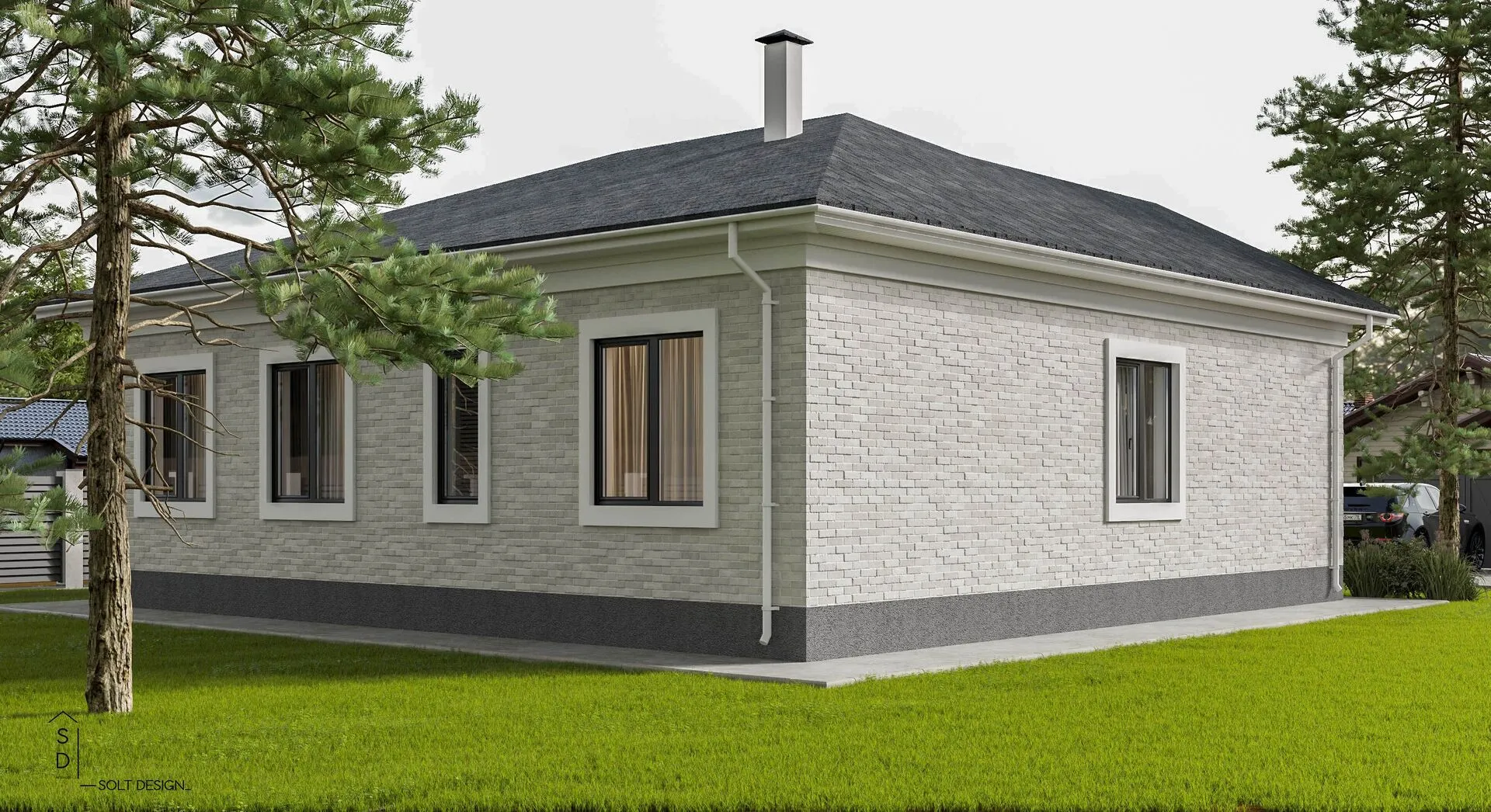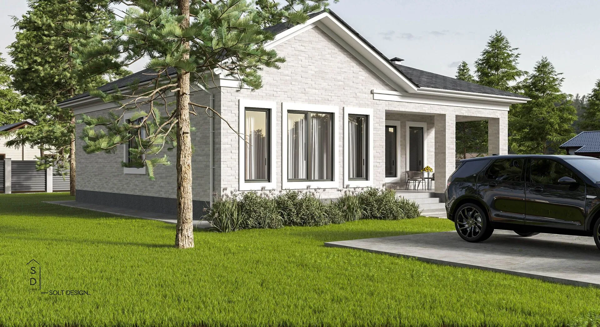 Современный одноэтажный коттедж с встроенным гаражом S3-162-1 (Zx160)