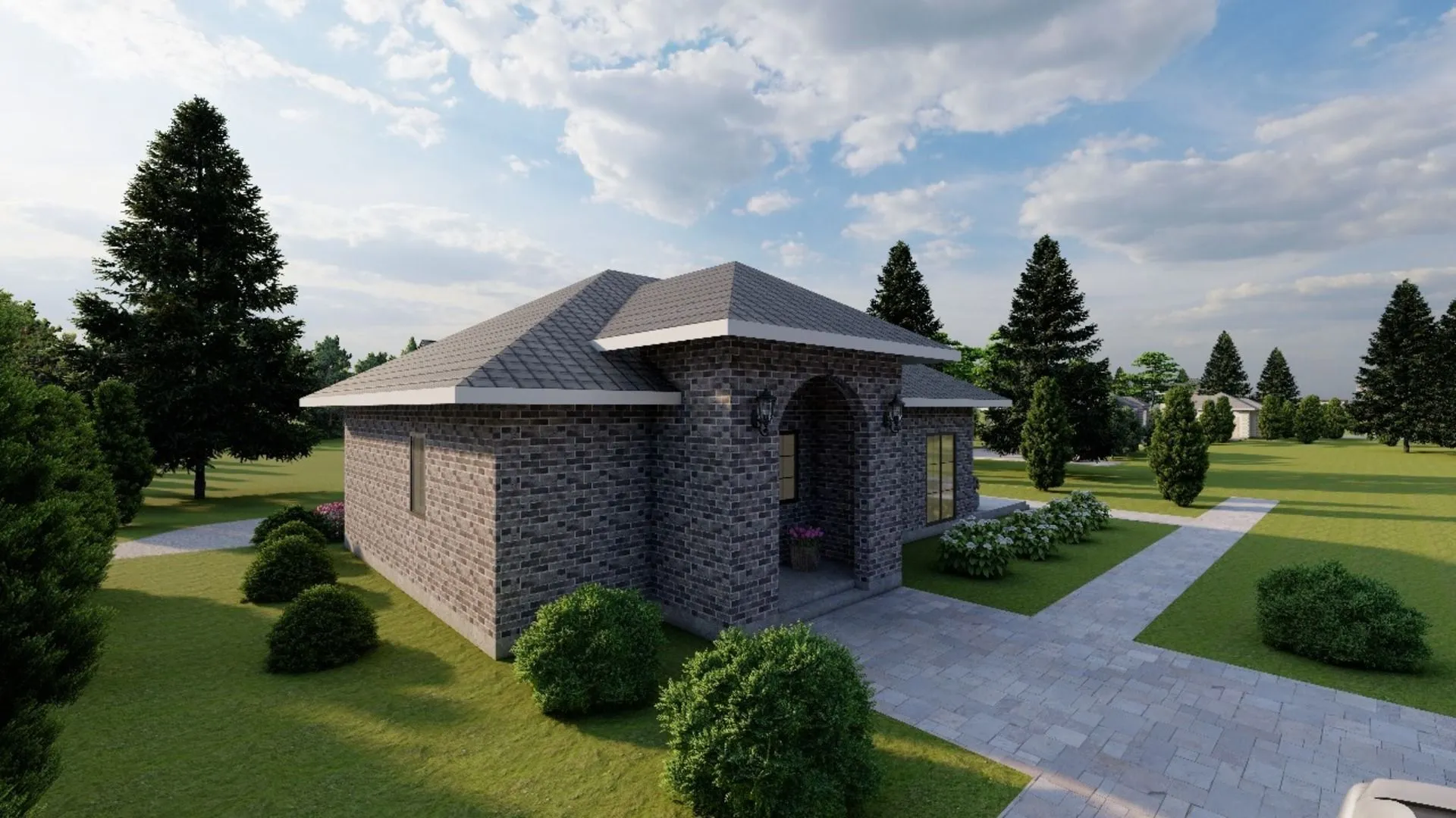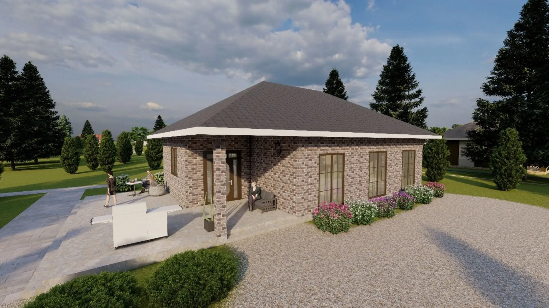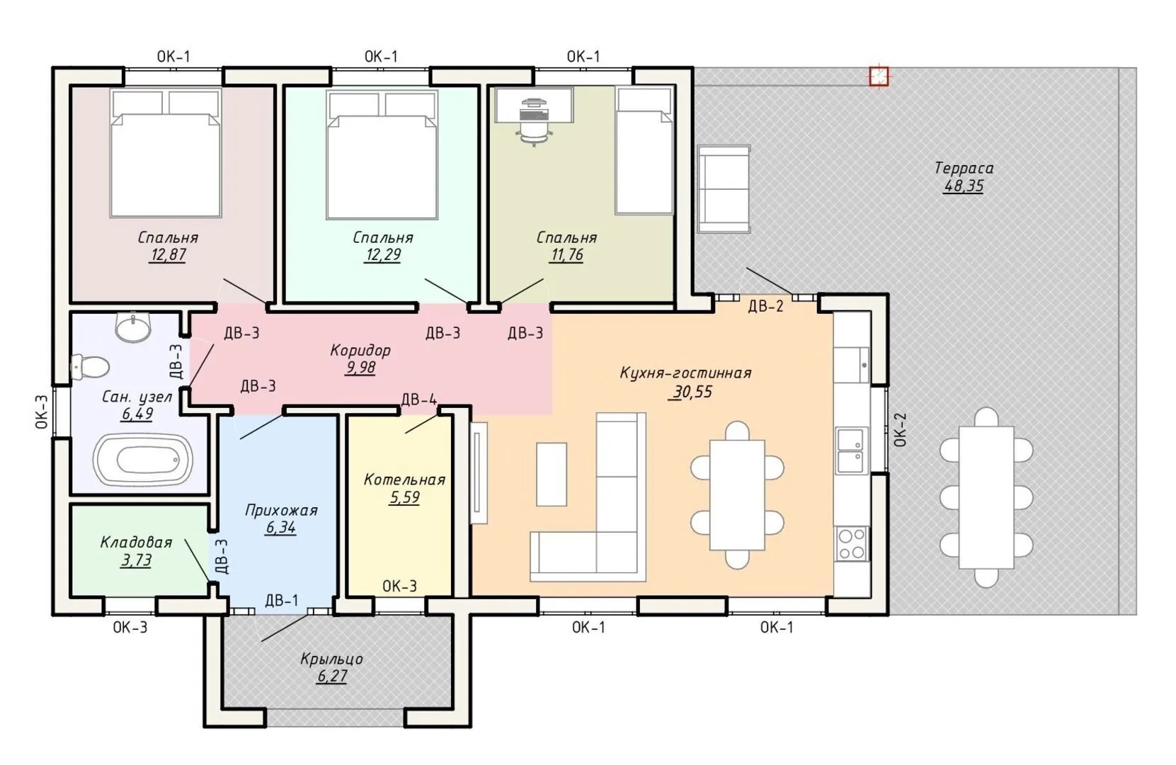 Одноэтажный кирпичный дом STANDART — 99 m2 (Декоративная штукатурка)