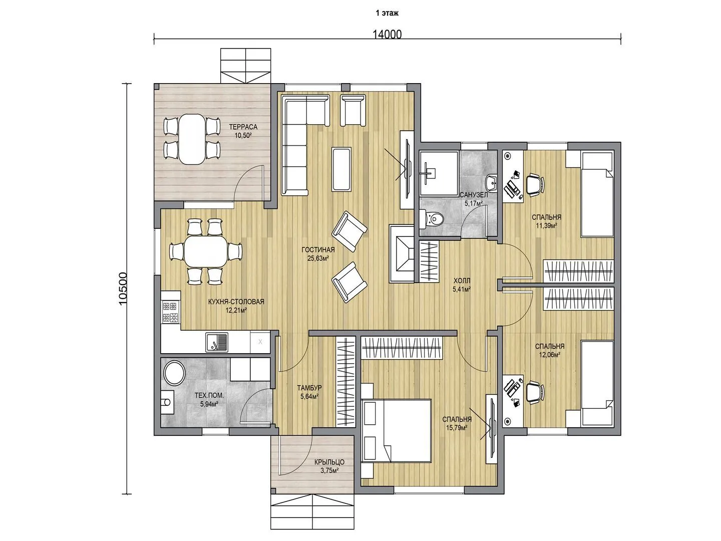 Одноэтажный семейный дом Аист-1 (3 спальни)