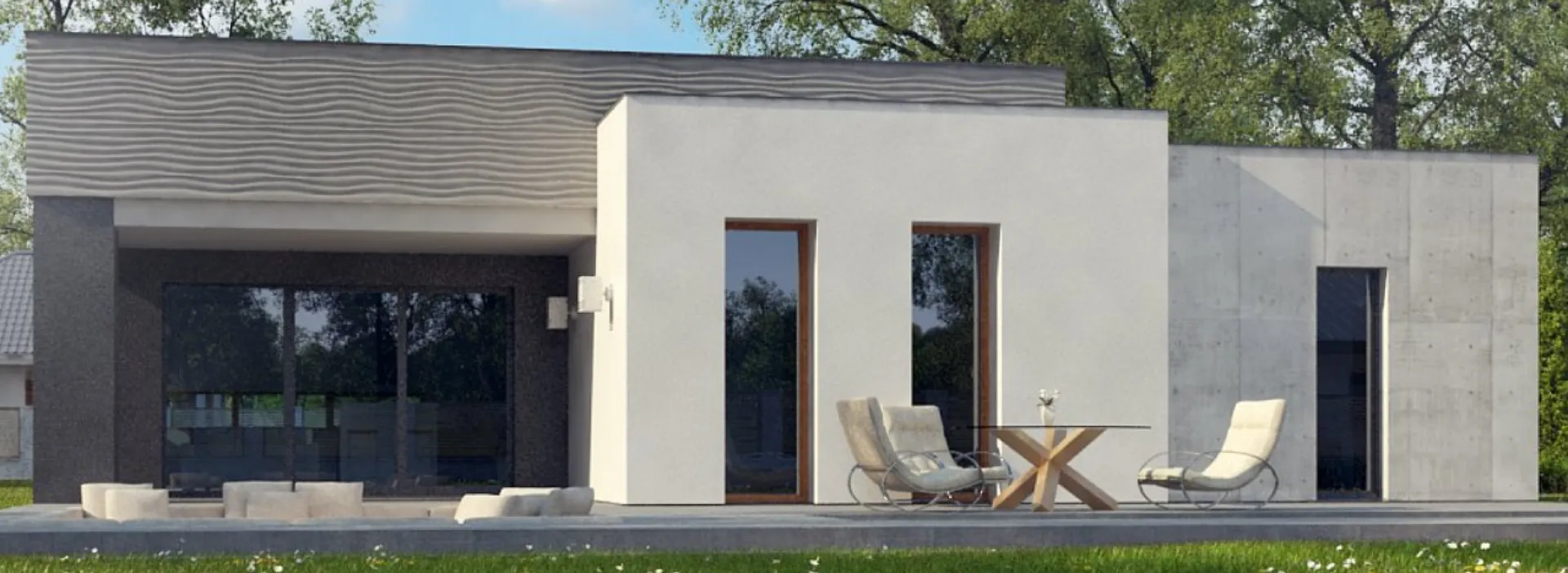 Одноэтажного дома в стиле хай-тек с гаражом s3-152-2 (Zx56)