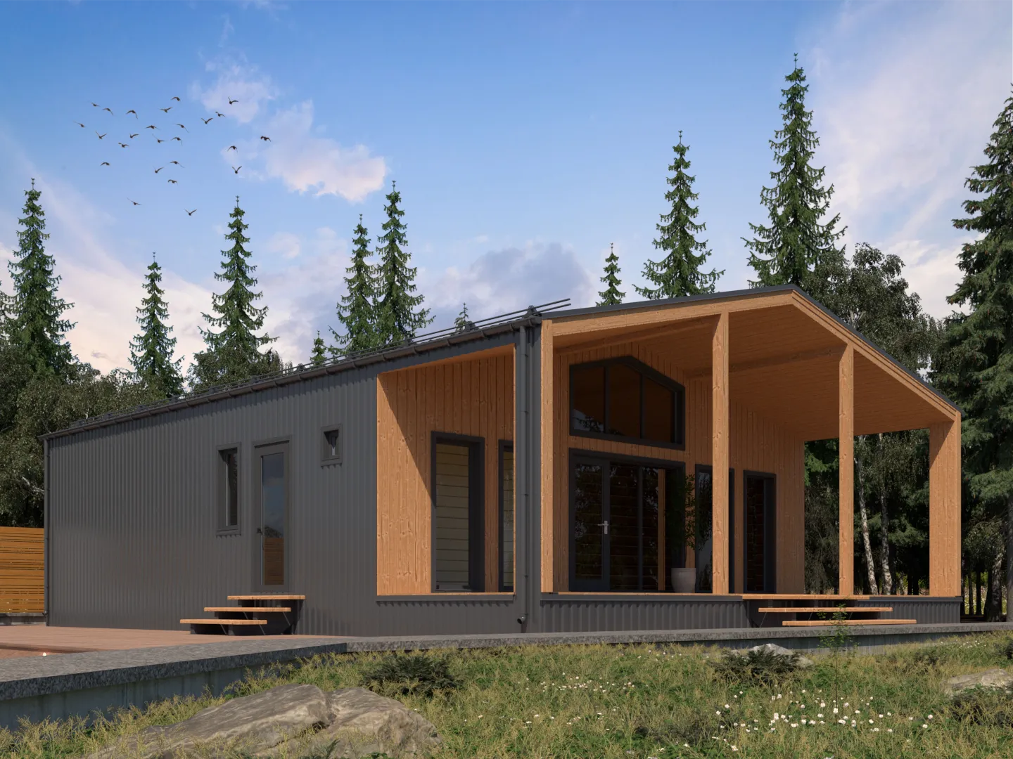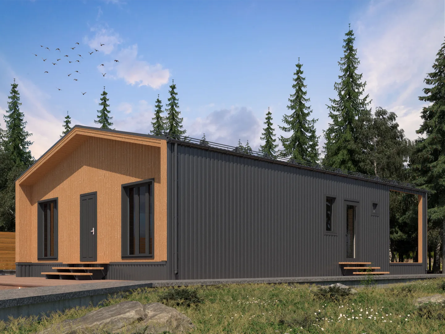 Строительство деревянных каркасных домовСтроительство домовСтроительство домов без балкона или лоджииСтроительство домов без верандыСтроительство домов без гаражаСтроительство домов без чердакаСтроительство домов в стиле БарнхаусСтроительство домов для круглогодичного проживанияСтроительство домов с верандойСтроительство домов с двускатной крышейСтроительство домов с террасойСтроительство одноэтажных домов