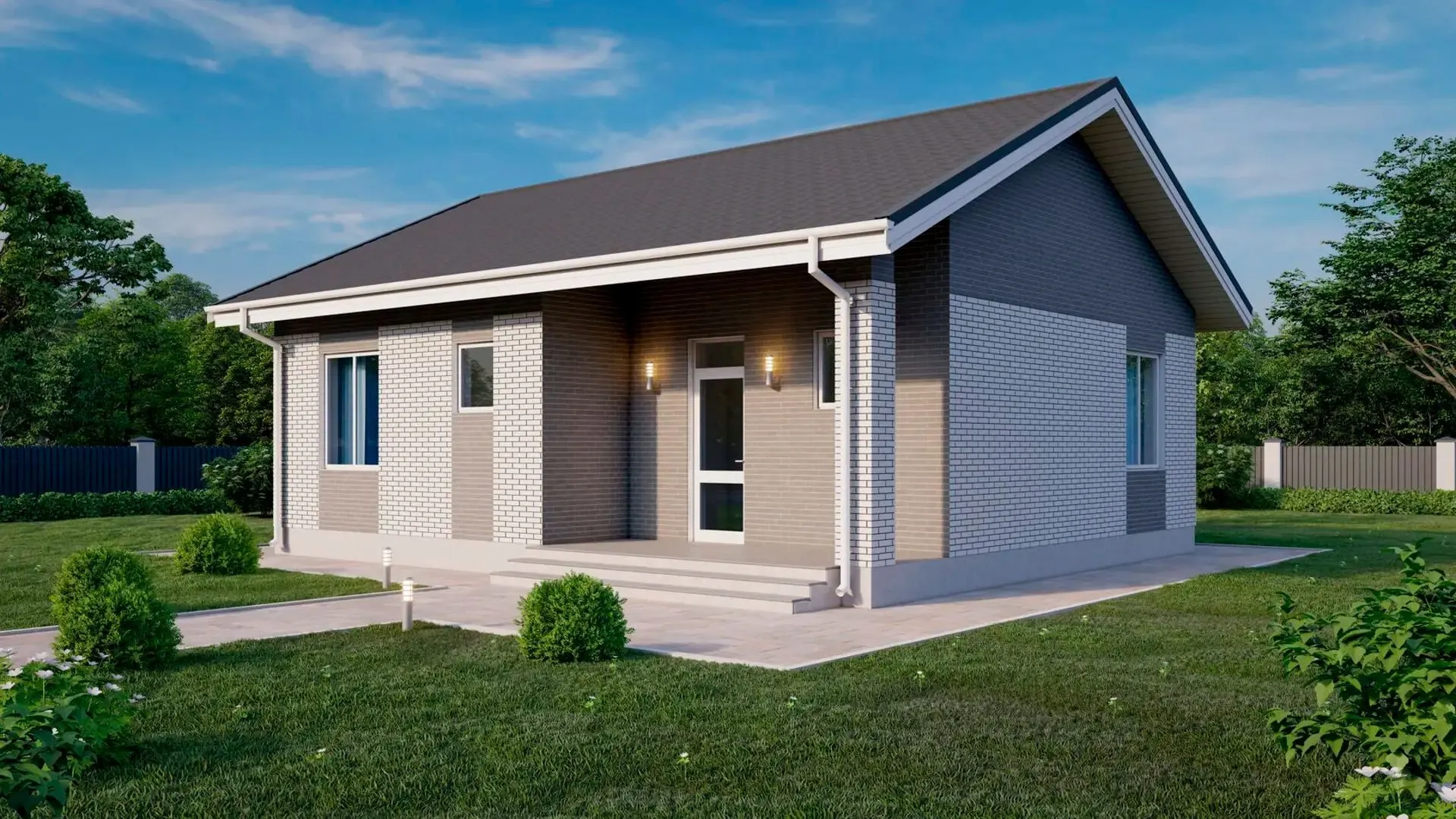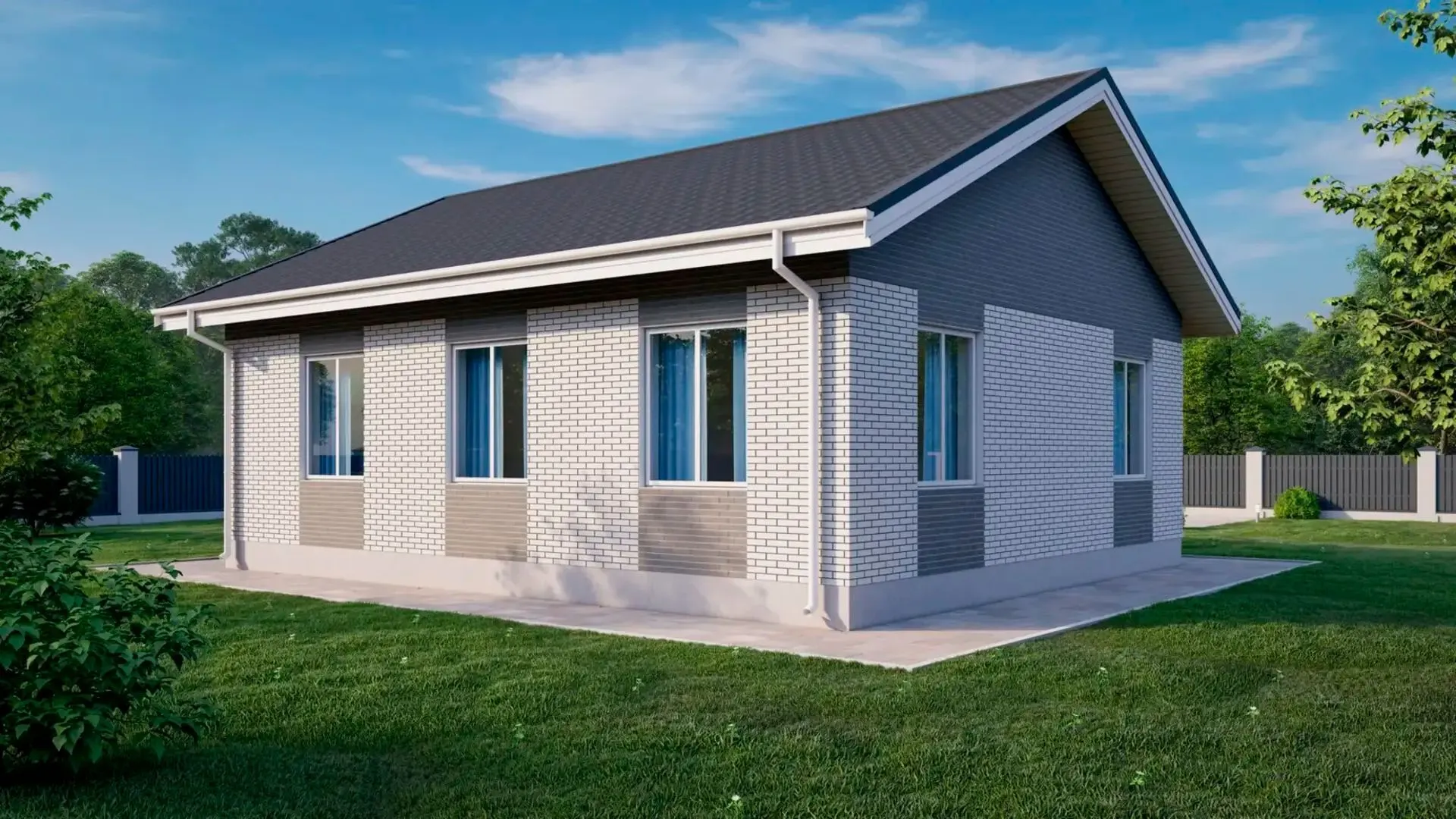 Незаметно впрыгнув в атмосферу спокойствия и уюта, вы обнаруживаете одинэтажный дом, созданный из прочного и одновременно легкого керамзитоблока «Мир». Его классический фасад и двускатная крыша придают ему изящество, словно он вышел из самых ярких страниц архитектурных журналов. Дом полностью рассчитан на круглогодичное проживание: изысканные внутренние интерьеры, продуманные планировки и светлые помещения делают каждый день здесь настоящим комфортом. Отдельное внимание заслуживает просторная терраса, где вы сможете наслаждаться рассветами и закатами, устраивать семейные барбекю или просто отдыхать после трудного дня. Внутренняя планировка без балконов и лоджий создаёт ощущение простора и интимности, а отсутствие пригорода гаража освобождает пространство для свободных идей. Это настоящий шедевр, где современность встречается с традицией, а каждый элемент дома – от прочных керамзитоблоков до тщательно подобранной крыши – дарит уверенность в его долговечности и надежности.