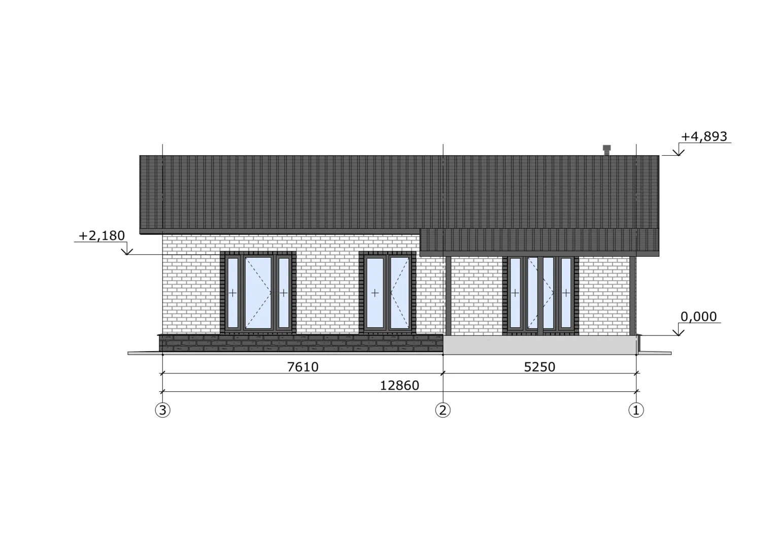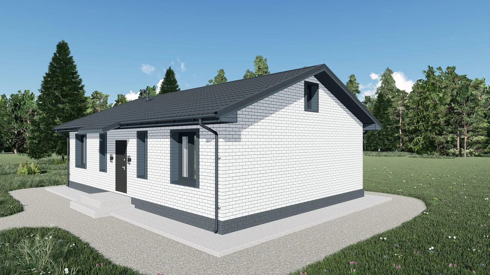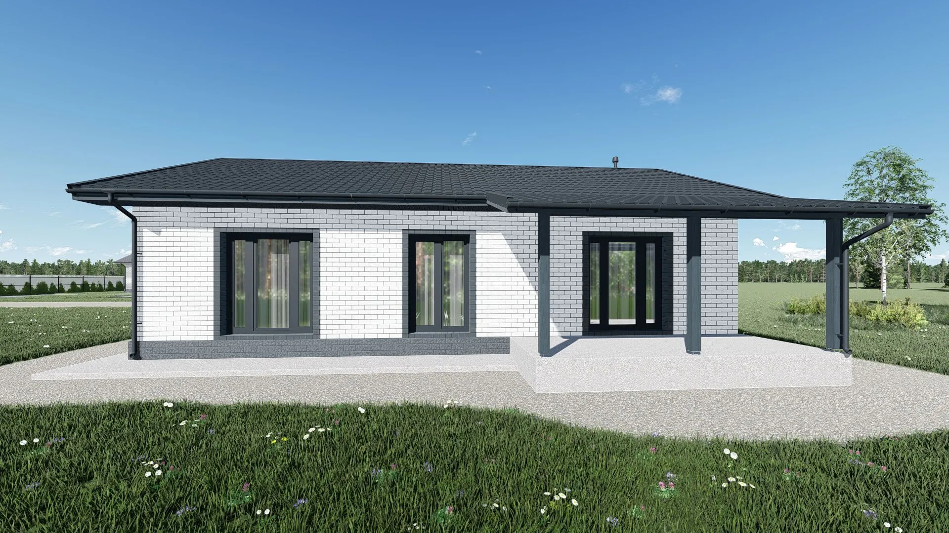 Одноэтажный дом 100 кв.м, облицовка кирпич-100К