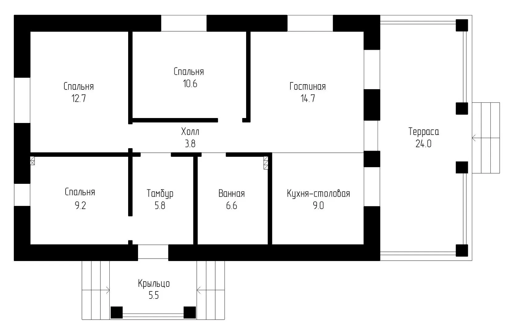 Одноэтажный дом 102 кв.м. ЦН-102