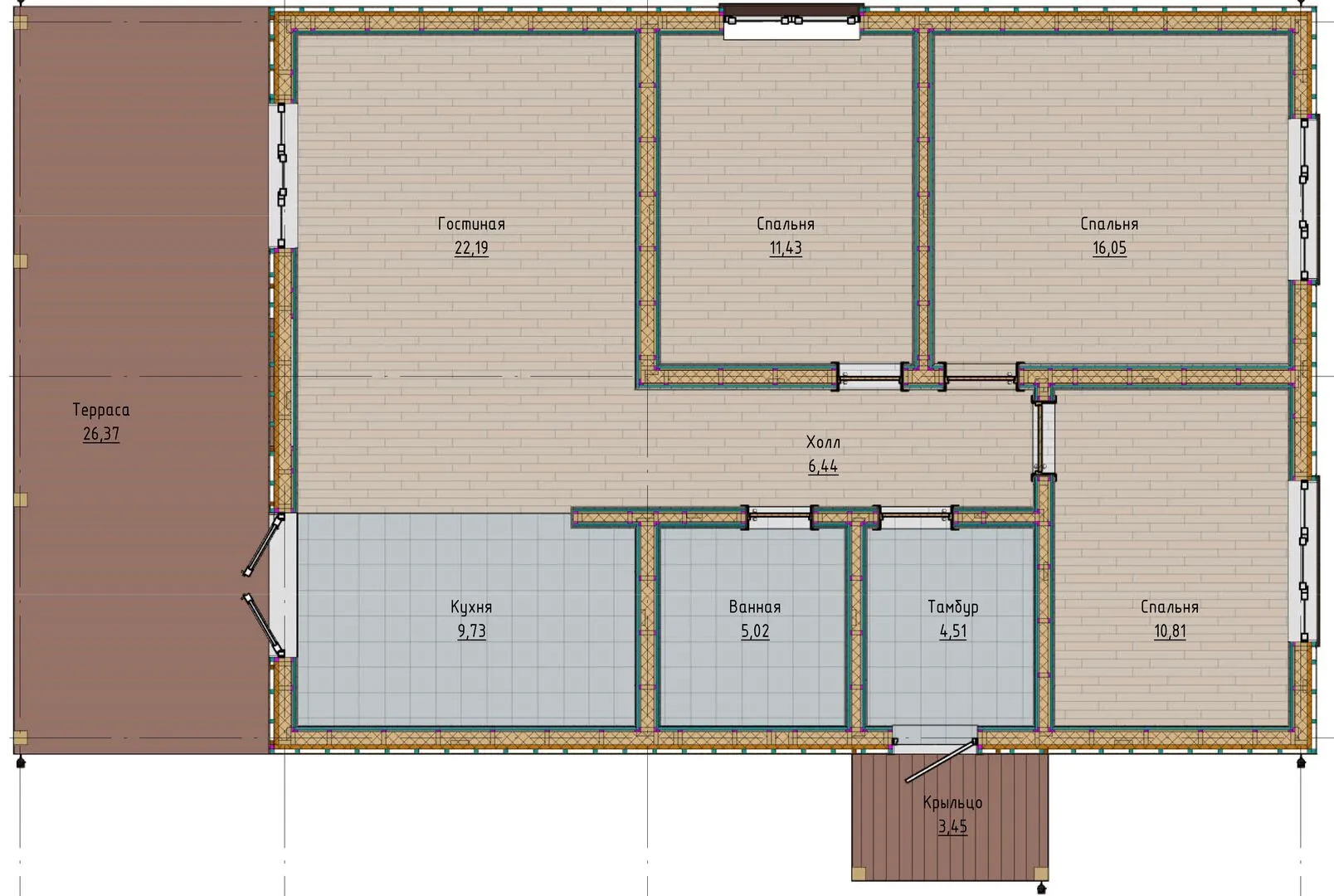 Заказать конусльтацию по:Одноэтажный дом 108м2