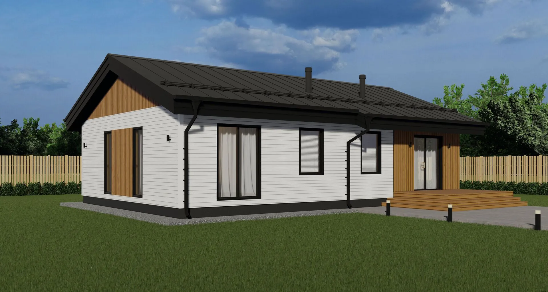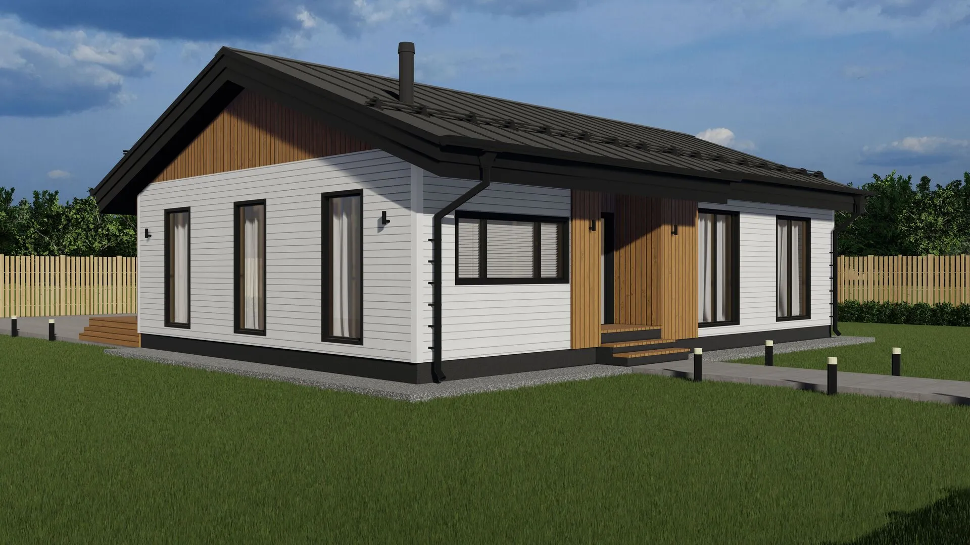 Небольшой, но уютный одинэтажный дом площадью 60 м² в стиле классики – это сочетание элегантности и практичности, созданное для комфортного круглогодичного проживания. Уже при первом взгляде в окна ощущается светлая, воздушная атмосфера, а строгие элегантные линии фасада подчёркивают достоинства архитектуры без излишнего суета. Дом легко вписывается как в спокойный деревенский район, так и в живописные окраины города, оставляя достаточно пространства для того, чтобы каждый уголок стал вашим личным уголком уюта. Сейчас вы можете почувствовать, как тепло солнечных лучей проникает в светлую гостиную, в которой открываются просторы для творчества и семейный праздник. Удобная планировка вмещает открытый кухонный бар, где кулинарные эксперименты превращаются в радостные ритуалы. Обеет, что оттепель в квартире почти всегда совпадает с приятной влажностью наружного воздуха. А благодаря чердачному помещению можно создать кабинет или игровую комнату для детей – ведь всё в одном доме! Надёжная конструкция из SIP‑панелей обеспечивает превосходную энергоэффективность: в холодное время года ваш дом остаётся тепле, а сжатые расходы на теплоэнергию только радуют кошелёк. Двускатная крыша с классическим уклоном защищает от неблагоприятных погодных условий и добавляет дополнительный эстетический акцент. На террасе приятно проводить летние вечера, наслаждаясь лёгким ветерком или утренним кофе. Такой дом – это не просто стены и крыша, а пространство, куда хочется возвращаться снова и снова.