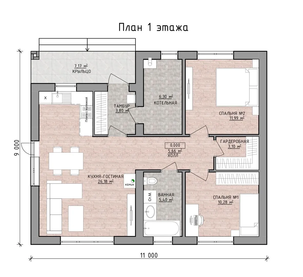 Заказать конусльтацию по:Одноэтажный дом 80 м2 Классик