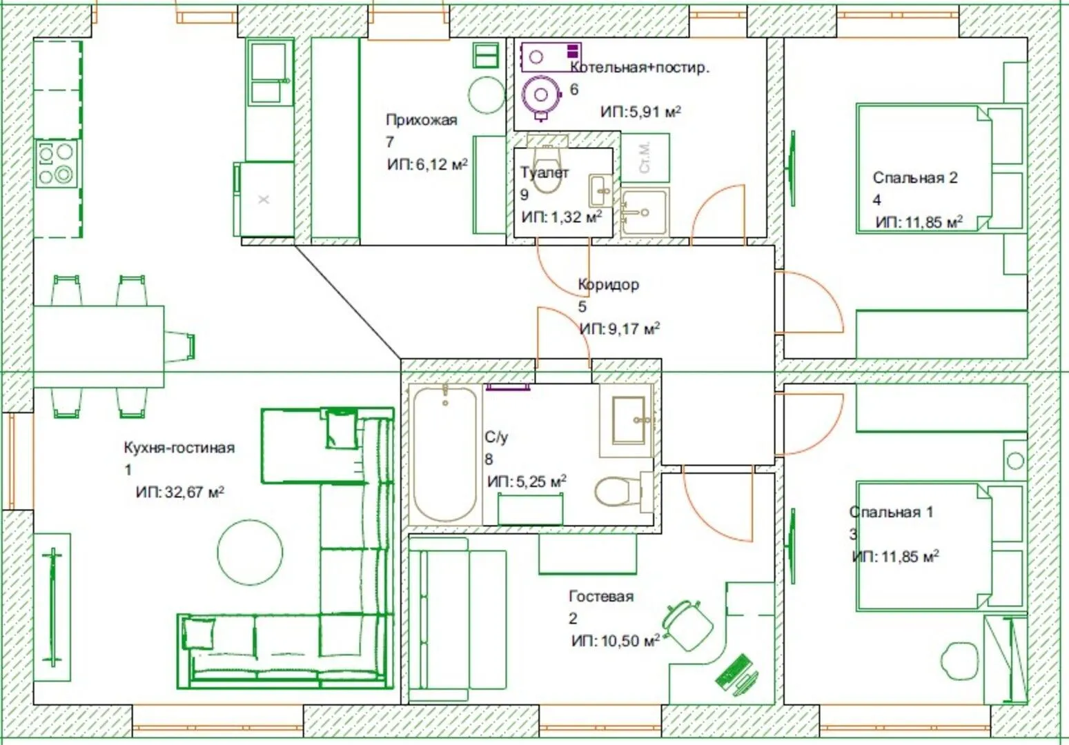 Почувствуйте атмосферу простоты и элегантности в одном из самых уютных одноэтажных домов, рассчитанного на 94,64 м². Его классический облик с гармоничными линиями и строгими формами создаёт ощущение домашнего тепла и надёжности. Стены, построенные из полистиролбетона, обеспечивают отличную тепло- и звукоизоляцию, а четырехскатная крыша с вальмовой системой гарантирует долговечность и надежную защиту от неблагоприятных погодных условий. Это ваша крепость, где каждый день будет как уютный, защищённый уголок. Внутреннее пространство раскрывает потенциал простоты и функциональности: от открытого планового решения до продуманного расположения окон, позволяющего впускать максимальное количество естественного света. В доме предусмотрено чердачное помещение, которое открывает дополнительное пространство для хранения, ремесел или уютного рабочего уголка. Всё выполнено в рамках круглогодичного проживания, так что ничто не будет мешать комфортной жизни в любое время года. Без излишних привязок к балконам, верандам или гаражам вы свободны от лишних забот и расходов на их содержание. Благодаря продуманной архитектуре и качественным материалам, этот дом предлагает не только эстетическое наслаждение, но и практичность — именно то, что современный клиент ценит, выбирая свой идеальный уголок для жизни. Это ваш новый дом, воплощающий гармонию стиля и удобства.