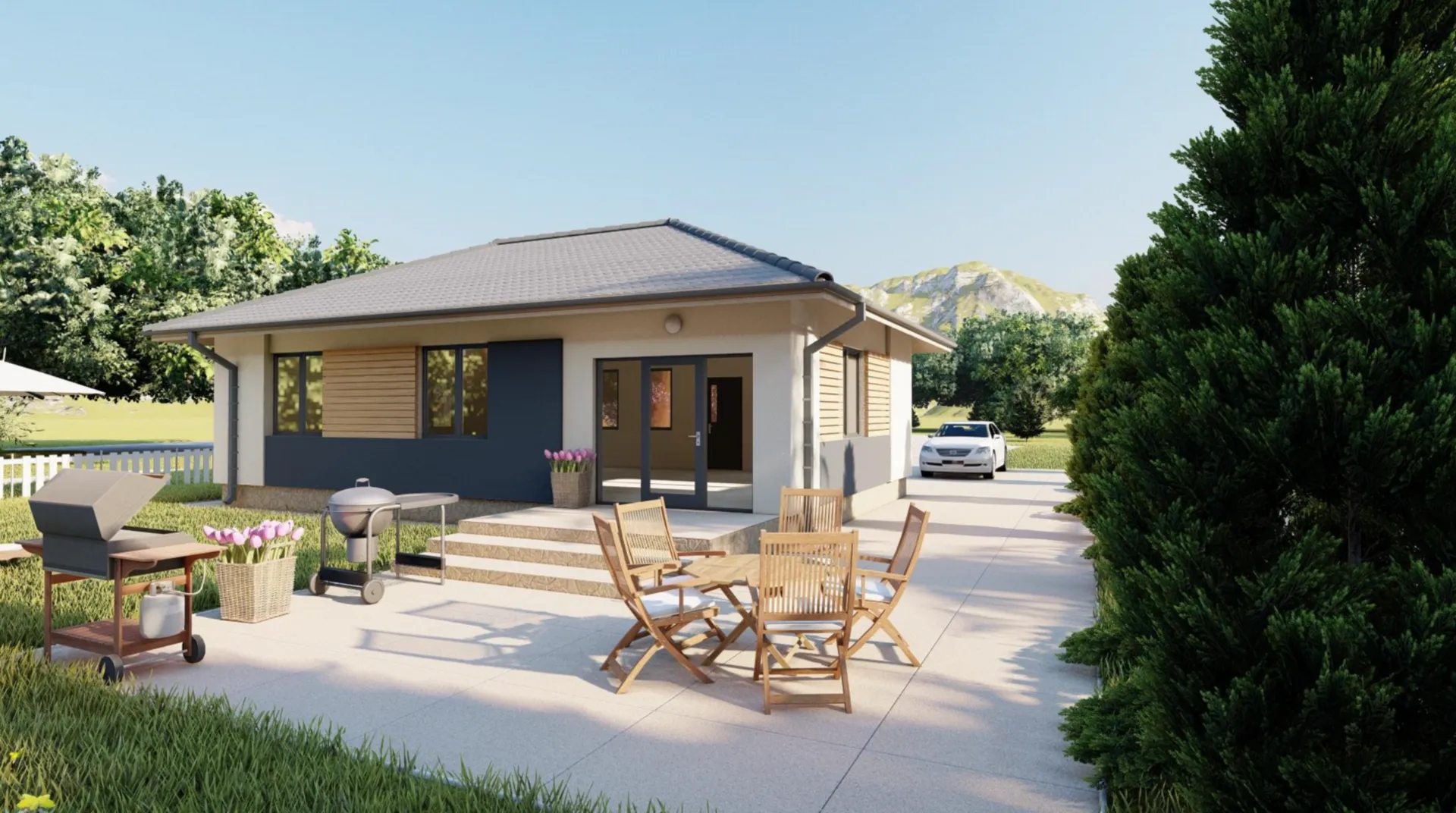 Проект одноэтажного дома с терассой