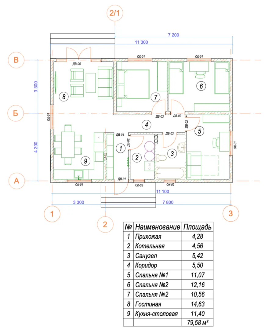 Площадь дома 80 м2