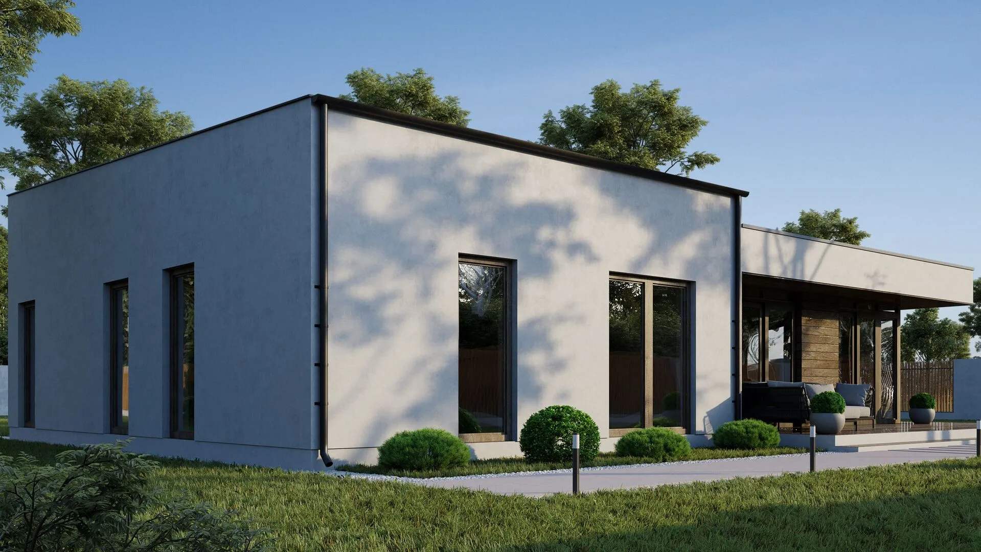 **Дом «Бали» – ваш уголок уюта и простора** Эта одноэтажная жемчужина в стиле современного балийского дизайна подарит вам спокойствие и комфорт круглый год. Он открыт и светел, благодаря обилию больших окон, которые пропускают тепло и создают ощущение близости к природе. Дом без лишних изысков, но при этом с продуманной планировкой: свободный внутренний двор, просторные зоны отдыха и кухни, где готовить хочется каждый день. **Преимущества, которые делают «Бали» идеальным выбором** Только в этом доме вы почувствуете, как удобно жить без балконов и гаражей: вся бытовая техника и пространство размещены так, чтобы каждый уголок был функционален. А просторная терраса, соединяющая вас с садом, превращает каждый вечер в маленький праздник на свежем воздухе. К тому же, отсутствие чердака и пригоршни других лишних помещений делает дом более доступным и экономичным, а при этом без потери качества жизни. Выбирая «Бали», вы выбираете современность, простоту и идеальное сочетание уюта с функциональностью. Это ваш новый дом, где каждый день начинается с улыбки и завершается теплом семейного очага.